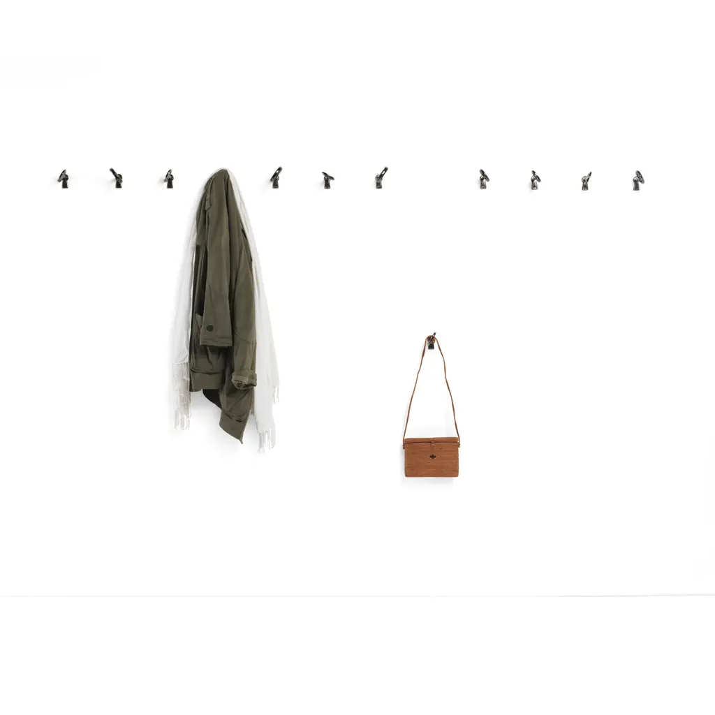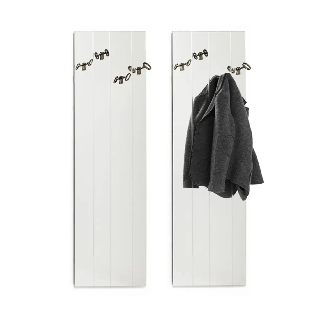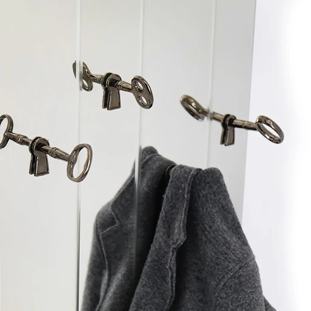 Introducing Mogg Memorie- a set of 4 elegant clothes hanger keys in cast brass, featuring a sleek black nickel finish. These old-style keys bring a renewed and sophisticated touch to your space, while functioning as both wall decor and functional hangers. Elevate your wardrobe display with these exclusive and tasteful pieces.