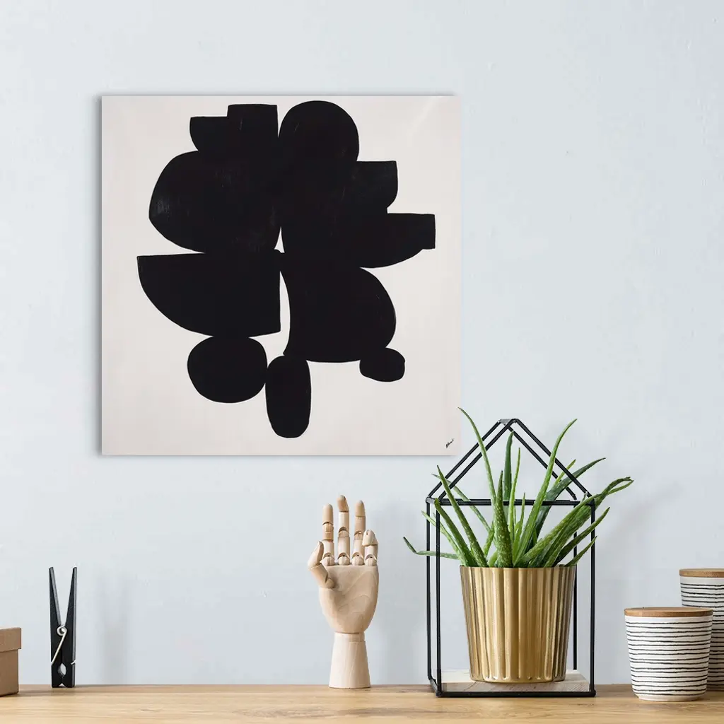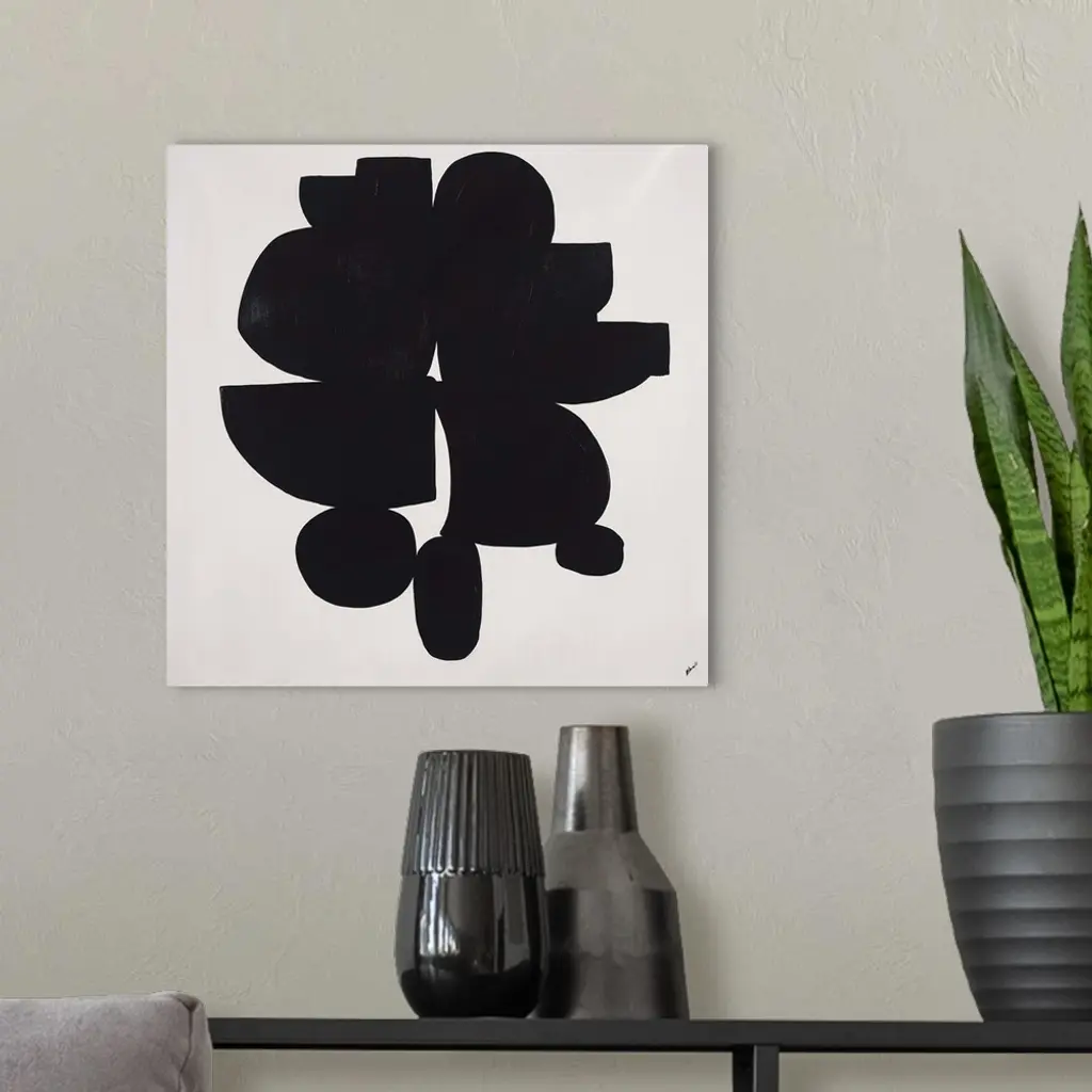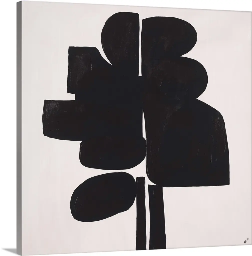 Abstract painting using heavy black paint to make shapes, almost appearing as something in silhouette.