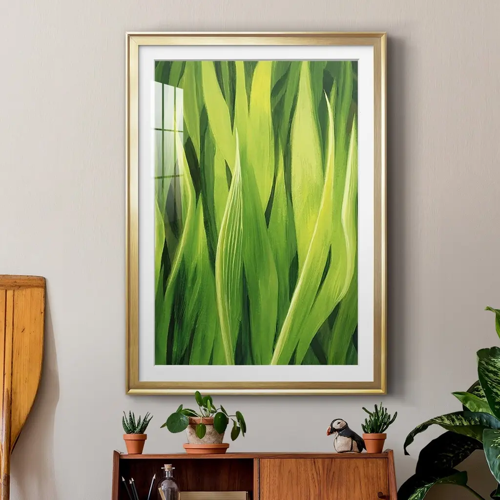 Blades of Grass II Premium Framed Print - Ready to Hang A Premium Framed Print created to last. Framed in distressed wood and available in an array of sizes and colors Featuring a beveled a solid wood stretcher bar, each piece comes ready to hand 4 SIZES AVAILABLE 30.5''X42.5'' - Overall Size 26.5'X36.5'' - Overall Size 22.5''x30.5'' - Overall Size 18.5''x24.5'' - Overall Size Each piece is made to order. Each piece comes with hanging hardware. Made in the USA Ready to Hang Giclee Paper Print Acrylic Glass Beveled Matt Board