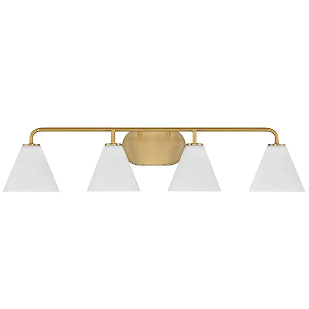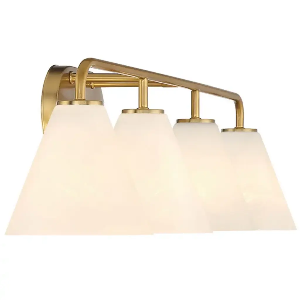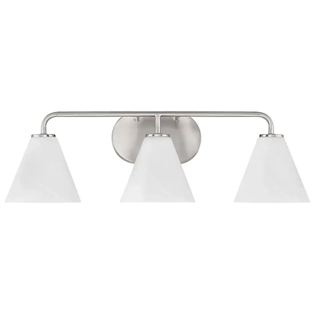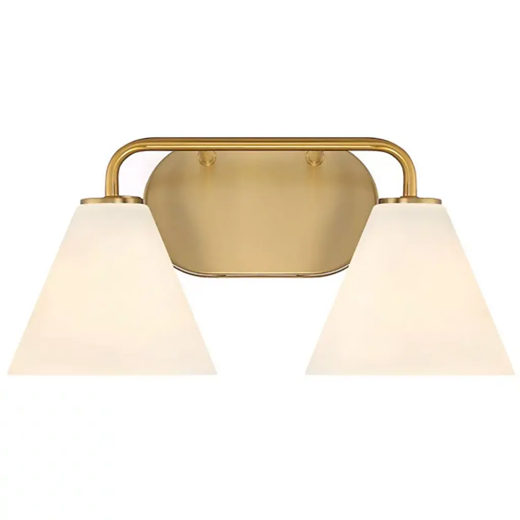 The Blair Bath Bar from Savoy House supplements a warm, welcoming glow to your bathroom or powder room. It has two conical shades of strie glass, their surfaces adorned with delicate wisps and swirls. Versatility is key with the Blair Bath Bar. Its transitional design with the option to install the fixture with the glass facing up or down provides flexibility, allowing you to customize the lighting effect to suit your space and preferences.