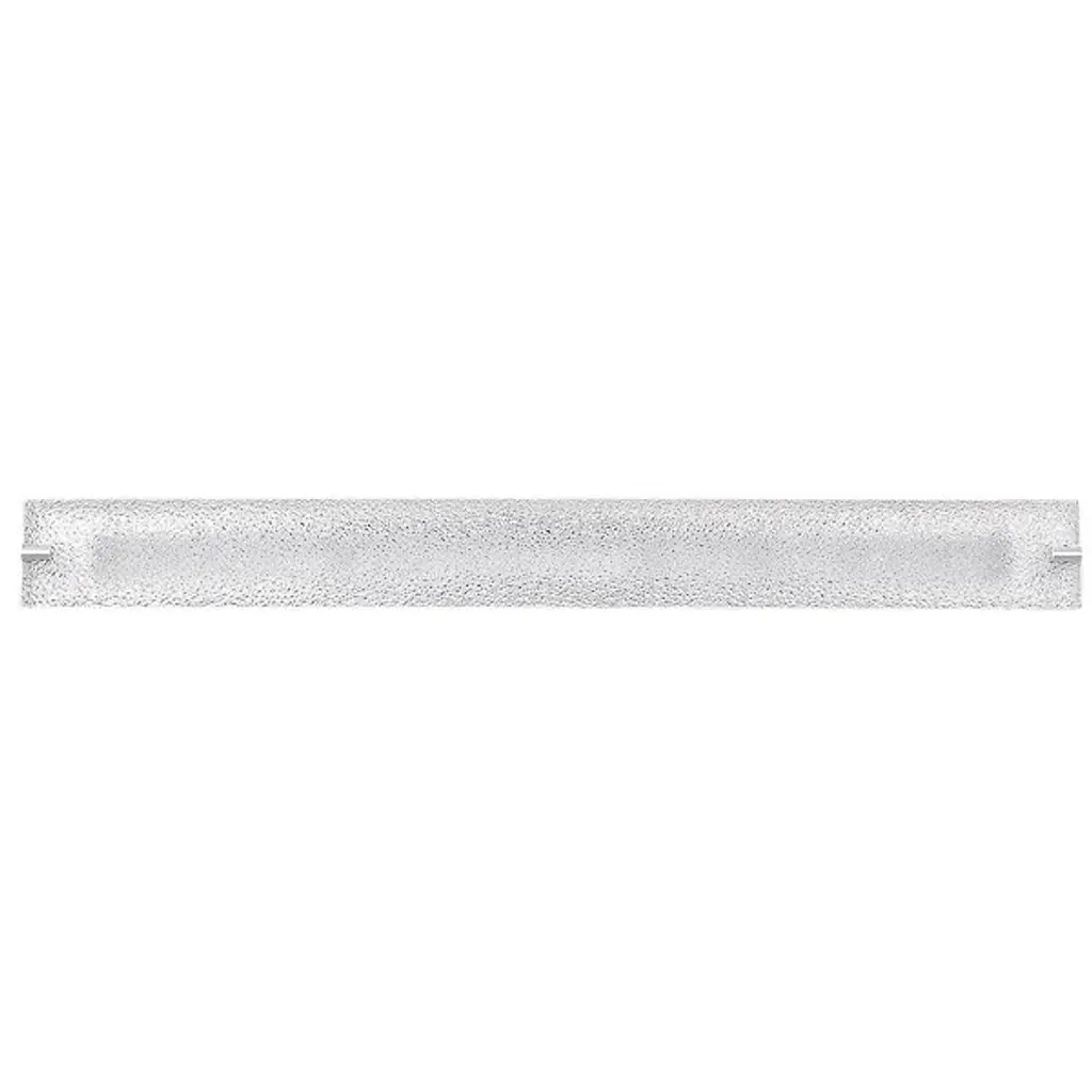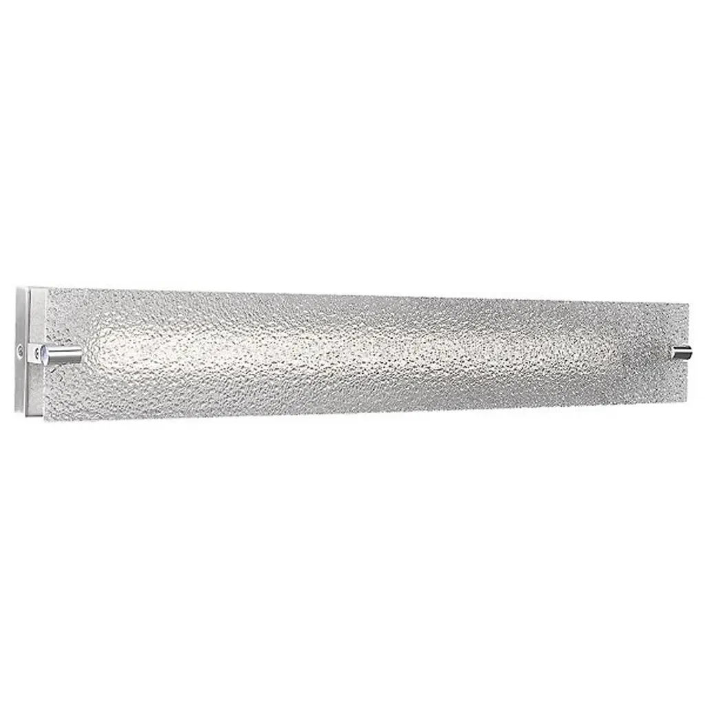 The Blaze LED Vanity Light by Abra Lighting is a clean and minimalistic piece with some contemporary flair. A flat panel of artisan-crafted water glass is held at either end by simple metal arms, creating a textured surface for energy-efficient light to warmly filter through. Supported with a full, rectangular, metal backplate, the silhouette of this bath bar is crisp and neat, leaving the beautiful glass piece to remain the feature as it brightens master and guest bathrooms.