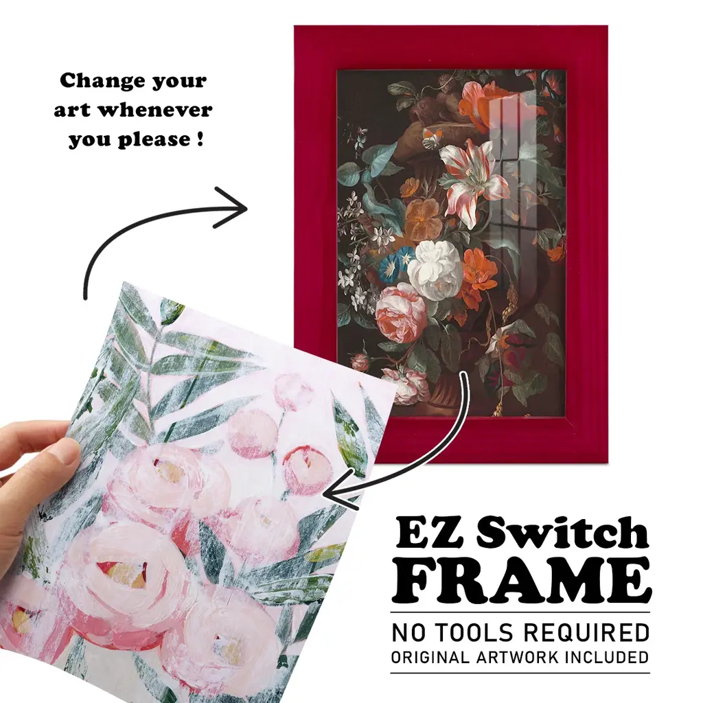 Bleached Bouquet III -EZ SWITCH Framed Print w/glass-Cherry Red A delightful, framed print. Featuring a solid wood frame with real wood glass. This premium print is giclee quality. In addition, every frame features a removable back and table top stand. This allows you to change your art in the future or to just stand the art on a table for a new look. We are sure you'll enjoy our new series of EZ SWITCH Framed Art. Solid Wood Frame Real Glass Removable / Replaceable Art Built in Tabletop Stand Sizes range from 4x6 up to 12x15 - buy just one or pair them up as sets as you see fit.