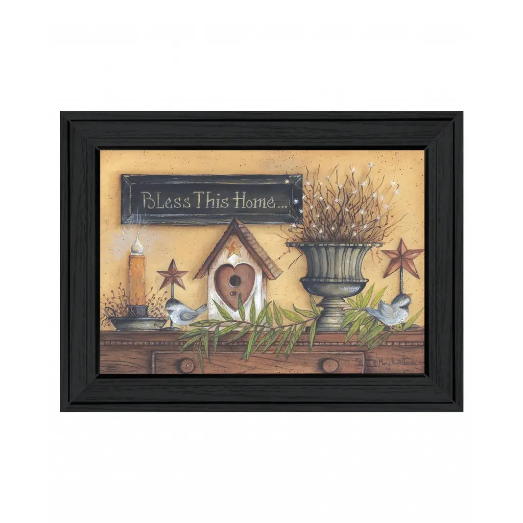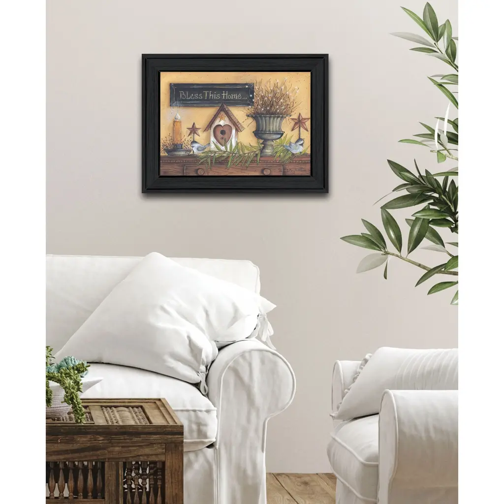 Unique and decorative, this bless this home 3 black framed print wall art will leave a lasting impression. This print is a visual artistic expression that allows you to decorate your space in style. Reproduced for you on wood, this hanging decorative accent will be a trendy and fashionable way to dress your walls in a rustic and modern farmhouse vibe. Hang on your wall to add some up to date fashion and decoration. Instantly liven up your space with this art that brings color and dimension to your walls. 15" H x 19" W x 1" D