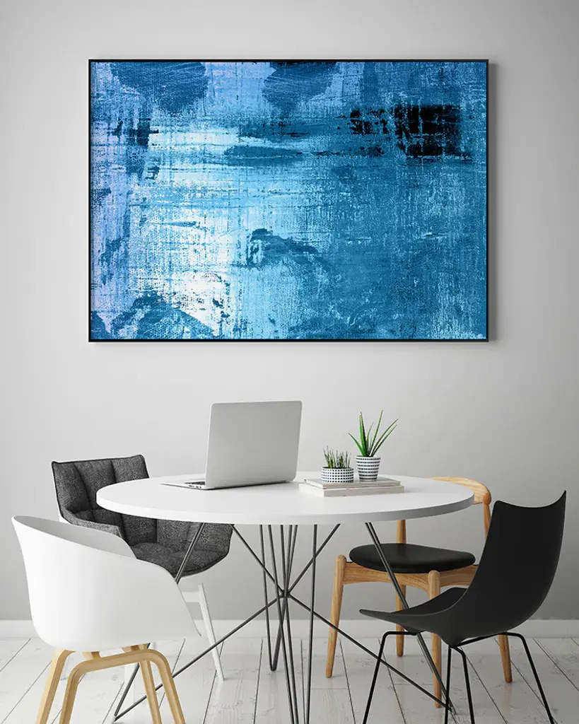 Your ready to hang artwork is printed on canvas then stretched and mounted to a 2-inch thick - hand stained black wood frame. Arrives at your door complete with an easy to use self-leveling hangking kit.