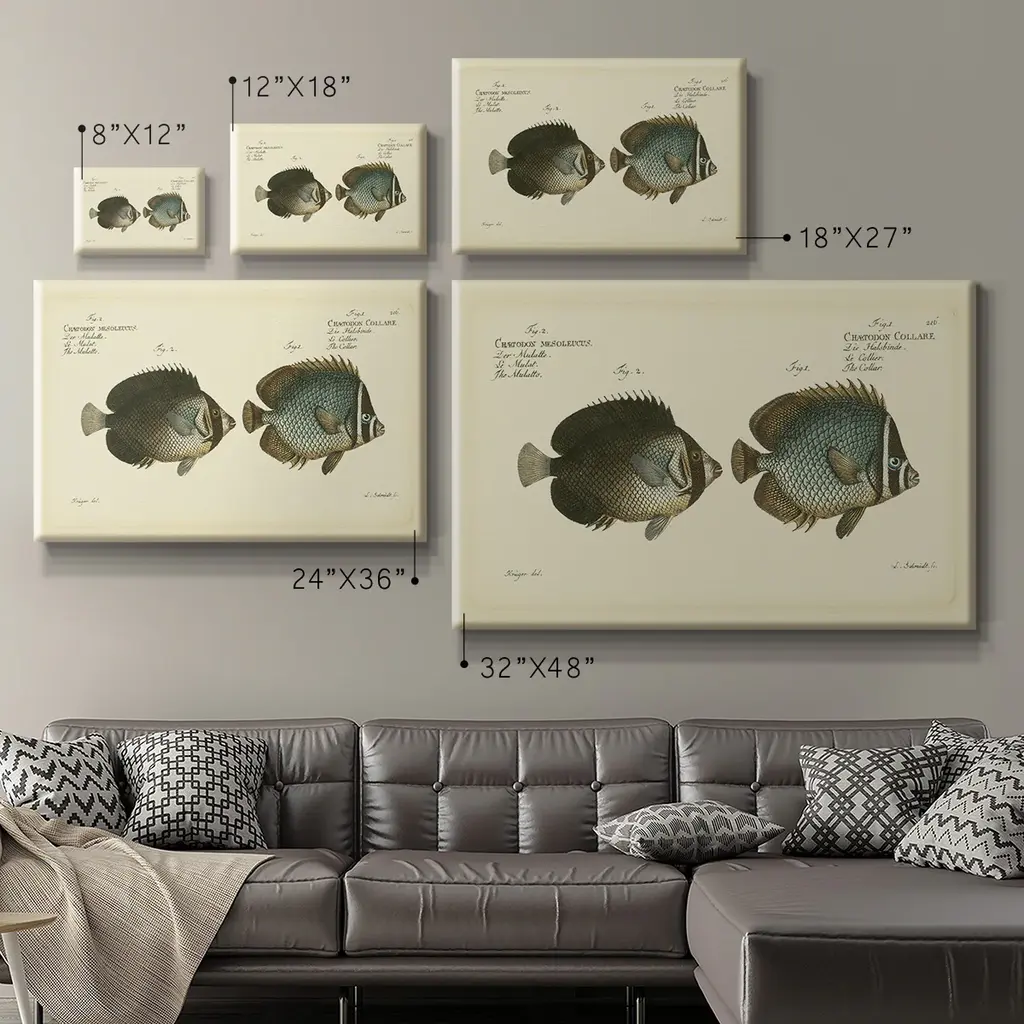 Bloch Antique Fish V Premium Gallery Wrapped Canvas - Ready to Hang A premium hand stretched gallery wrapped canvas print created to last. Featuring a beveled a solid wood stretcher bar, each piece comes ready to hand 6 SIZES AVAILABLE 8''X12'' - Overall Size 12''X18'' - Overall Size 18''X27'' - Overall Size 24''x36'' - Overall Size 32''x48'' - Overall Size 40''x60'' - Overall Size Each piece is made to order. Built to Last Each piece comes ready to hang Solid wood stretcher Fade and Water resistant Made domestically