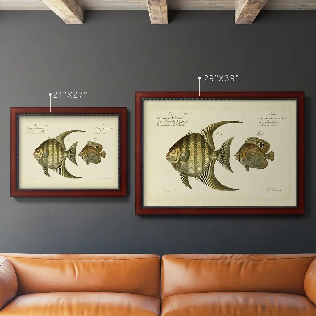 Bloch Antique Fish VI Premium Framed Canvas- Ready to Hang A Premium Framed Canvas created to last. Framed in distressed wood and available in an array of sizes and colors Featuring a beveled a solid wood stretcher bar, each piece comes ready to hand 3 SIZES AVAILABLE 16''X20'' - Overall Size 18'X27'' - Overall Size 24''x36'' - Overall Size Each piece is made to order. Each piece comes with hanging hardware. Made in the USA Ready to Hang Giclee Paper Print Acrylic Glass Beveled Matt Board