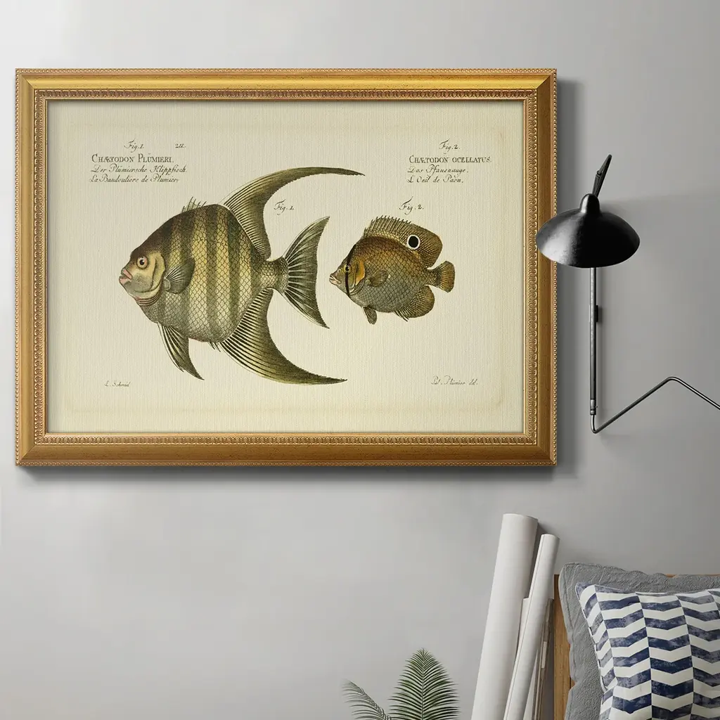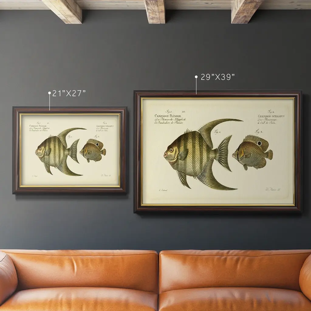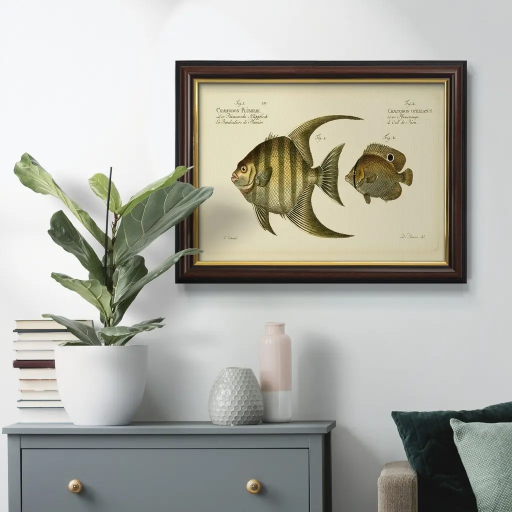 Bloch Antique Fish VI Premium Framed Canvas- Ready to Hang A Premium Framed Canvas created to last. Framed in distressed wood and available in an array of sizes and colors Featuring a beveled a solid wood stretcher bar, each piece comes ready to hand 3 SIZES AVAILABLE 16''X20'' - Overall Size 18'X27'' - Overall Size 24''x36'' - Overall Size Each piece is made to order. Each piece comes with hanging hardware. Made in the USA Ready to Hang Giclee Paper Print Acrylic Glass Beveled Matt Board
