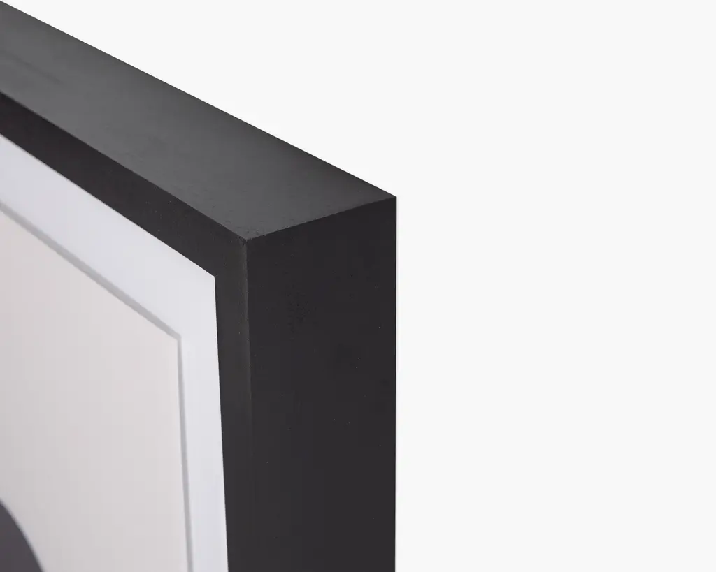 A seasoned graphic designer with a penchant for modern minimalism, artist Dan Hobday finds inspiration in the coastal landscapes of his hometown of Devon, England. Printed on watercolor paper and framed within black-finished American maple, for a museum-quality look. Handmade in Austin, Texas. Mounting hardware is included with detailed instructions. Frame dimensions: 36" x 48" Weight: 25 lbs Paper Acrylic glass Black maple frame Receives Threshold delivery