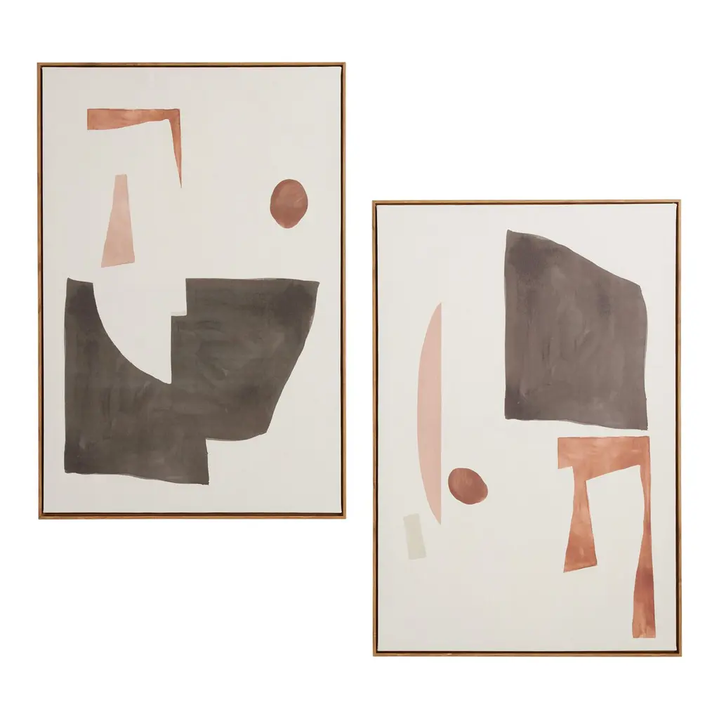 Simplicity reigns supreme with our exclusive set of modern wall art. Created by visual artist and graphic designer Jihee So, known for her refined nature-inspired designs, these framed canvas artworks offer clean cohesion with neutral tones of cream, black and deep brown forming abstract organic shapes.