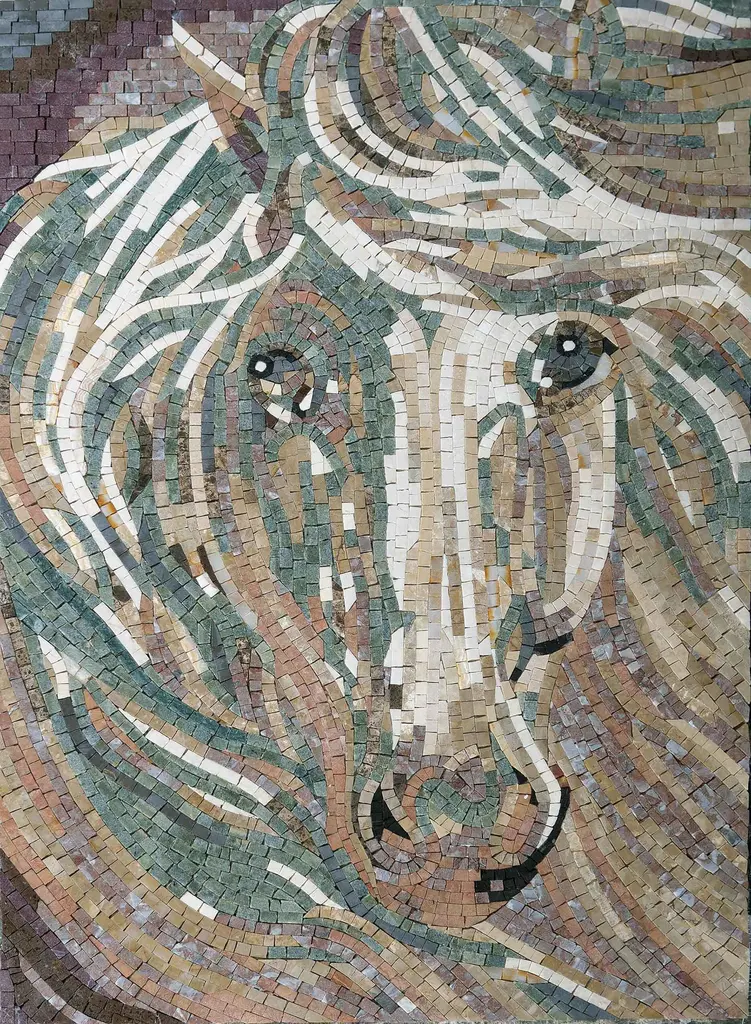 Introducing our stunning Blonde Clydesdale Horse Mosaic Art, a captivating piece that celebrates the beauty and majesty of one of the most intelligent horse breeds. This exquisite mosaic artwork is meticulously handmade from natural marble stones, showcasing a harmonious blend of blonde hues that bring the horse to life. As you gaze upon this masterpiece, you'll be enchanted by the intricate details that define the Clydesdale's glorious mane and expressive face.Set against a serene backdrop of lush forestry, this mosaic art captures the essence of nature and the freedom that horses embody. The contrast between the warm blonde tones of the horse and the rich greens of the trees creates a striking visual that draws the eye and sparks the imagination. Each strand of hair is delicately crafted, flowing effortlessly to enhance the Clydesdale's elegant profile as it gazes thoughtfully into the horizon.This unique piece of animal mosaic art not only serves as a stunning focal point for your home or office, but it also invites a sense of tranquility and inspiration into your spaces. Whether you are a horse lover, an art enthusiast, or someone who appreciates finely crafted decor, this Blonde Clydesdale Horse Mosaic Art will undoubtedly elevate your surroundings and create a welcoming atmosphere.Ideal for living rooms, entryways, or even a cozy nook, this artwork makes for a thoughtful gift for friends and family who share a passion for horses or adore artisanal creations. Each mosaic is a one-of-a-kind treasure, bringing a touch of nature's elegance and artistry into your life.Invite the spirit of freedom and beauty into your home with this enchanting Blonde Clydesdale Horse Mosaic Art and let it inspire moments of joy and creativity in your everyday life. Make a statement that celebrates the extraordinary elegance of Clydesdales today!