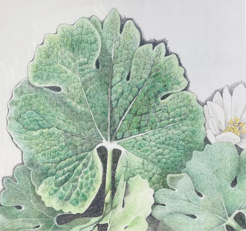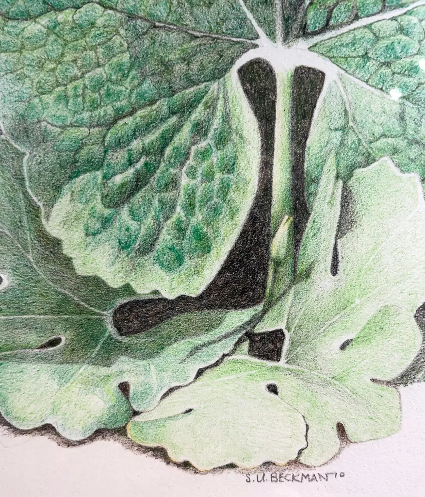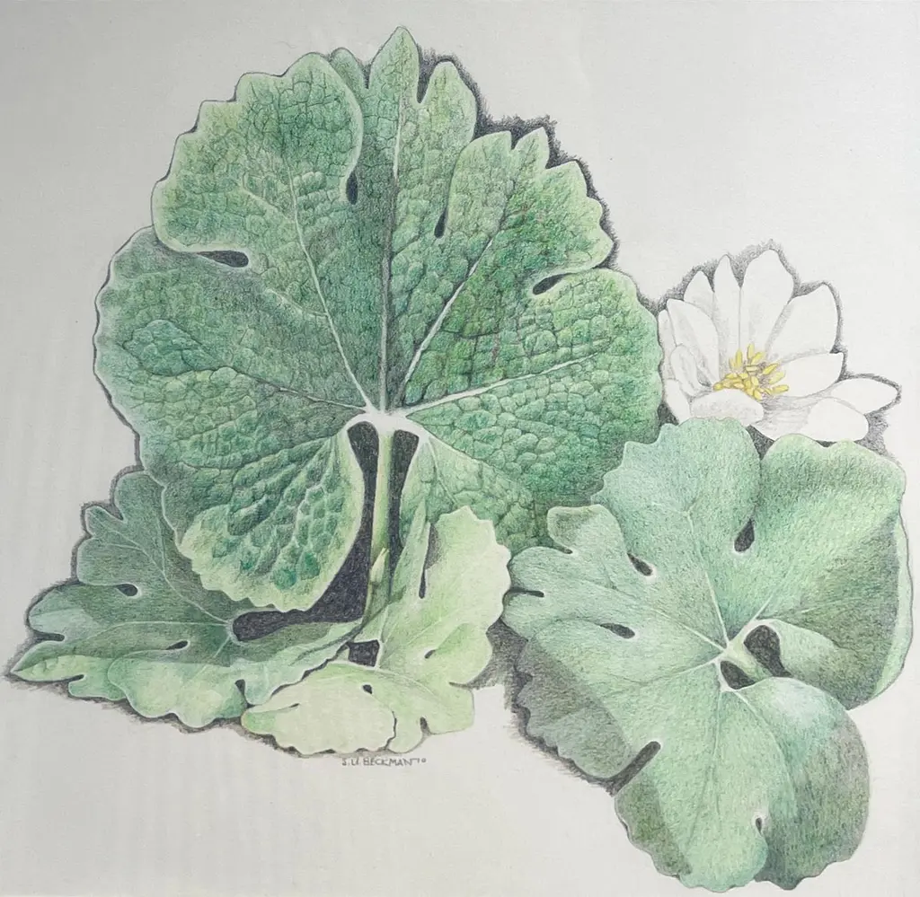 Reminiscent of John James Audubon specimen drawings, these two meticulously drawn swallow tail butterflies are matted separately and framed in a beautifully carved silver frameSylvia BeckmanBloodroot, 2010colored pencil on paper19.5 x 18.25 framedSUB005Sylvia Beckman, b. 1938, Detroit, MIEducation University of Michigan, School of Arch. & DesignUniversity of Wisconsin, BotanyPrivate apprenticeship in stone sculpture, bronze, gilding and paintingExhibitions2017 “Coming Attractions”, Gallery Victor Armendariz, Chicago, IL 1997 S.O.F.A. exhibition, Ann Nathan Gallery, Navy Pier, Chicago, IL1997 Monumental Bronze Sculpture Commisson, Olbrich Park, Madison, WI1994 Sculpture, Olbrich Botanic Gardens, Spring Display, Madison,WI1994 Paintings & Drawings, North Seas Gallery, Charlevoix, MI1994 Paintings & drawings, Olbrich Botanic Center, Madison, WI1988 Monumental Stone Sculpture,” Fiddleheads”, Olbrich Botanical Gardens, Madison WI 1984 Wisconsin Academy of Arts & Sciences, Madison, WI1981 J & W Sloane Co., San Francisco, CA1978 Fanny Garver Gallery, Madison, WI1977 Fanny Garver Gallery, Madison, WI1976 Reis Gallery, Charlevoix, MI1975 Madison Art Center, Madison, WI1974 Fanny Garver Gallery, Madison WIGalleries2017 Gallery Victor Armendariz, Chicago, IL 1997 Ann Nathan Gallery, Chicago, IL 1997 Fanny Garver 25th Anniversary Exhibition1995 - 97 Woodlot Gallery, Sheboygan, WI, sculpture1983 - 89 Chosy Gallery, Madison, WI1974 - 83 Fanny Garver Gallery, Madison, WI1980 - 81 Walking Lion Gallery, Charlevoix, MI1972 - 80 FAR Gallery, New York, NY1978 - 79 Karanan Gallery, Tiburon, CA1975 - 77 Bradley Gallery, Milwaukee, WI1975 - 76 Oeschaelager Gallery, Chicago, IL1975 - 76 Reis Gallery, Charlevoix, MI1975 Westmoreland Museum, Westmoreland, PAAwards1991 University of Wisconsin Arboretum Society, Invitational.,Madison, WI1990 Festival of the Pines, sculpture design, Eau Claire, WI1990 Art-In-Bloom, Madison Art Center, Madison, WI1989 Art-In-Bloom, Madison Art Center, Madison, WI1983 Charlevoix Invitational Exhibit, Charlevoix, MI1983 Fine Arts Invitational Benefit, Madison, WI1980 Ruhr-West Museum Invitational Anniversary Exhibit, WI1977 President’s Invitational, Madison Art Center, WI1976 Wustum Museum Fine Arts Invitational, WI1976 Wisconsin Pen Women Exhibit, Allis Art Library, Milwaukee, WI1970-79 Madison Art Guild Exhibits, Madison, WI1966 Beloit College Exhibition, Beloit, WI1965 Festival of the Arts, Milwaukee State Fair, WI1956 Scholastic Magazine National Art Competition, Carnegie Institute, two first place Gold Key Awards.CollectionsMrs. William S. Paley, New York, NYMrs. Phillip Usinger, San Francisco, CAMr. & Mrs. F. Renfret, Madison, WIMr. & Mrs. William Foss, San Francisco, CAMs. Jacquelyn Mitchard, Madison, WIMrs. Lenore Thornton, New York, NYMr. & Mrs. Geo. Rentschler, New York, NY Madison Art Center, WIDr. and Mrs. W. Langheim, Madison, WIWestmoreland Museum, PA Olbrich Botanic Gardens, WI, - Three (3) Monumental SculpturesTemple Beth-El Madison, WI - Bronze Sculpture: Tree of Life, The Twelve TribesAttic Angels, Madison, WI - Bronze Lily Fountain.