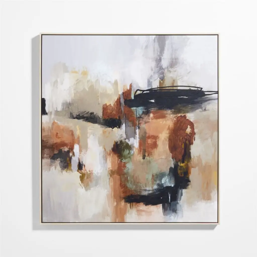 Kichael Bonofiglio uses color to tell stories and create work that is ever-changing but always modern. In "Bloom" washes of greys, browns, creams and greens punctuated with black layer an evocative composition. Beautiful in its abstraction, the large print suggests a portrait, a storm and more depending on your mood and perspective. This giclee print captures all of the textures and subtle hues of Bonofiglio's original acrylic painting and is presented in a natural wood frame.