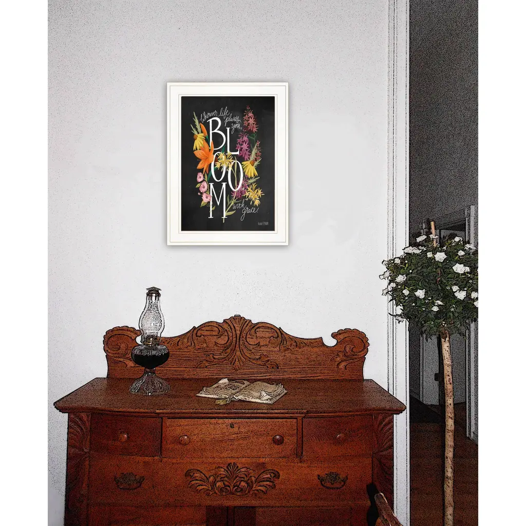 The bloom with grace 2 white framed print wall art is the perfect decorative accessory for your home. This print is a visual artistic expression that allows you to decorate your space in style. Reproduced for you on wood, this hanging decorative accent will be a trendy and fashionable way to dress your walls in a rustic and modern farmhouse vibe. Hang on your wall to add some up to date fashion and decoration. Utilize this opportunity to create a focal point in the room with this fabulous wall decor option. 19" H x 15" W x 1" D