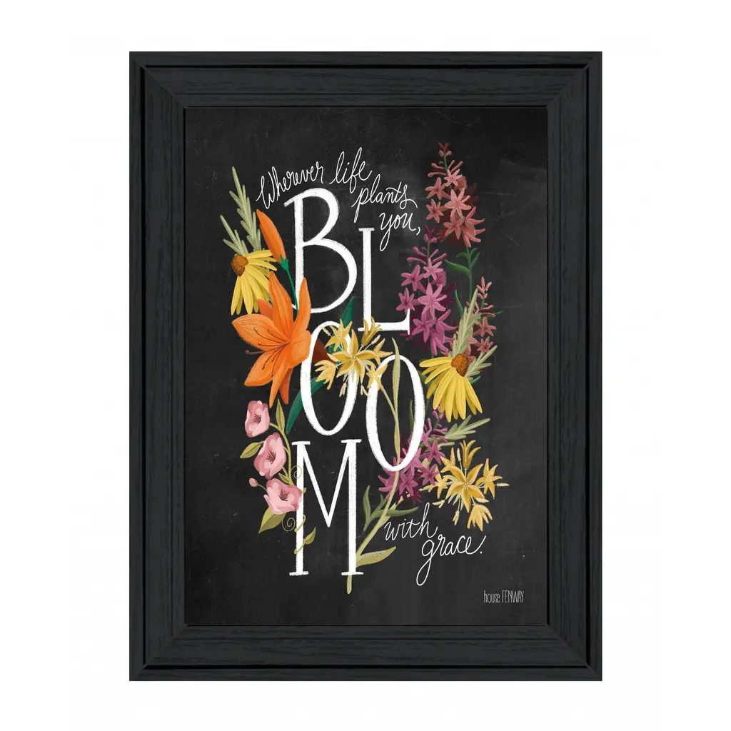 This bloom with grace 3 black framed print wall art will add a beautiful decorative accent to your decor. This print is a visual artistic expression that allows you to decorate your space in style. Reproduced for you on wood, this hanging decorative accent will be a trendy and fashionable way to dress your walls in a rustic and modern farmhouse vibe. Hang on your wall to add some up to date fashion and decoration. Utilize this opportunity to create a focal point in the room with this fabulous wall decor option. 19" H x 15" W x 1" D