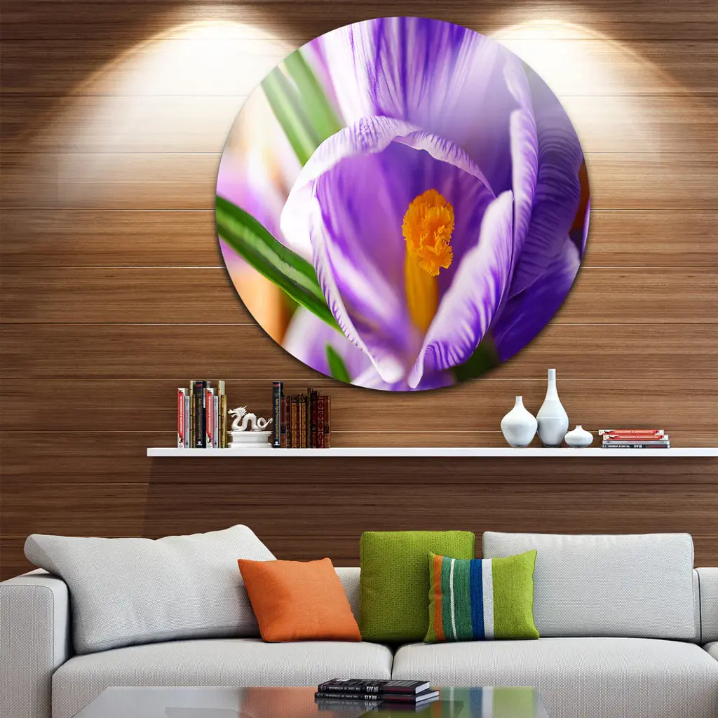 Blooming Crocus Flower, Floral Round Metal Wall Art, 36"