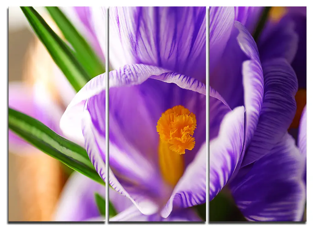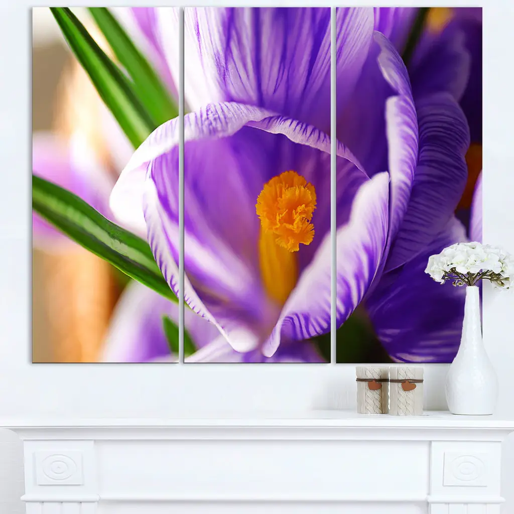 "Blooming Crocus Flower" Metal Wall Art, 3 Panels, 36"x28"
