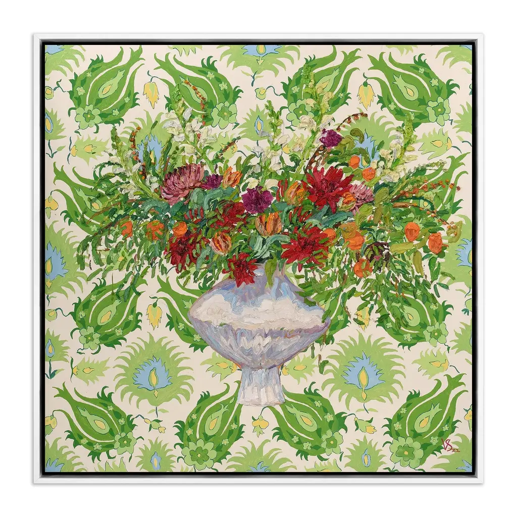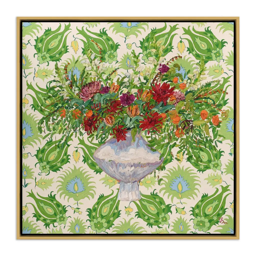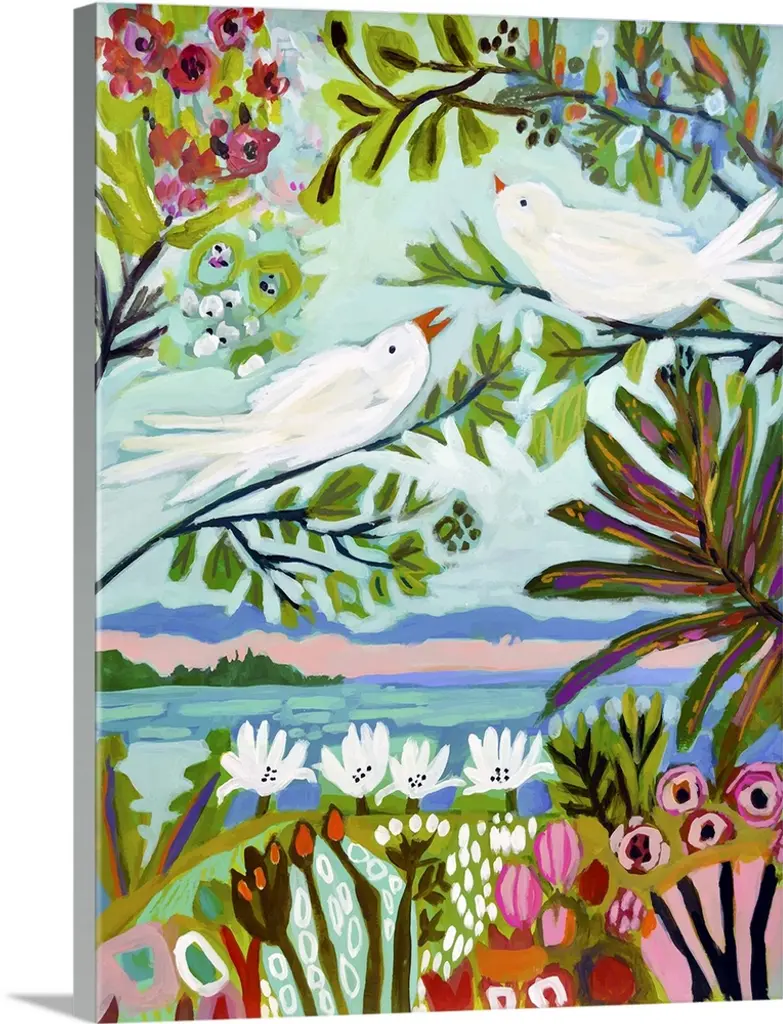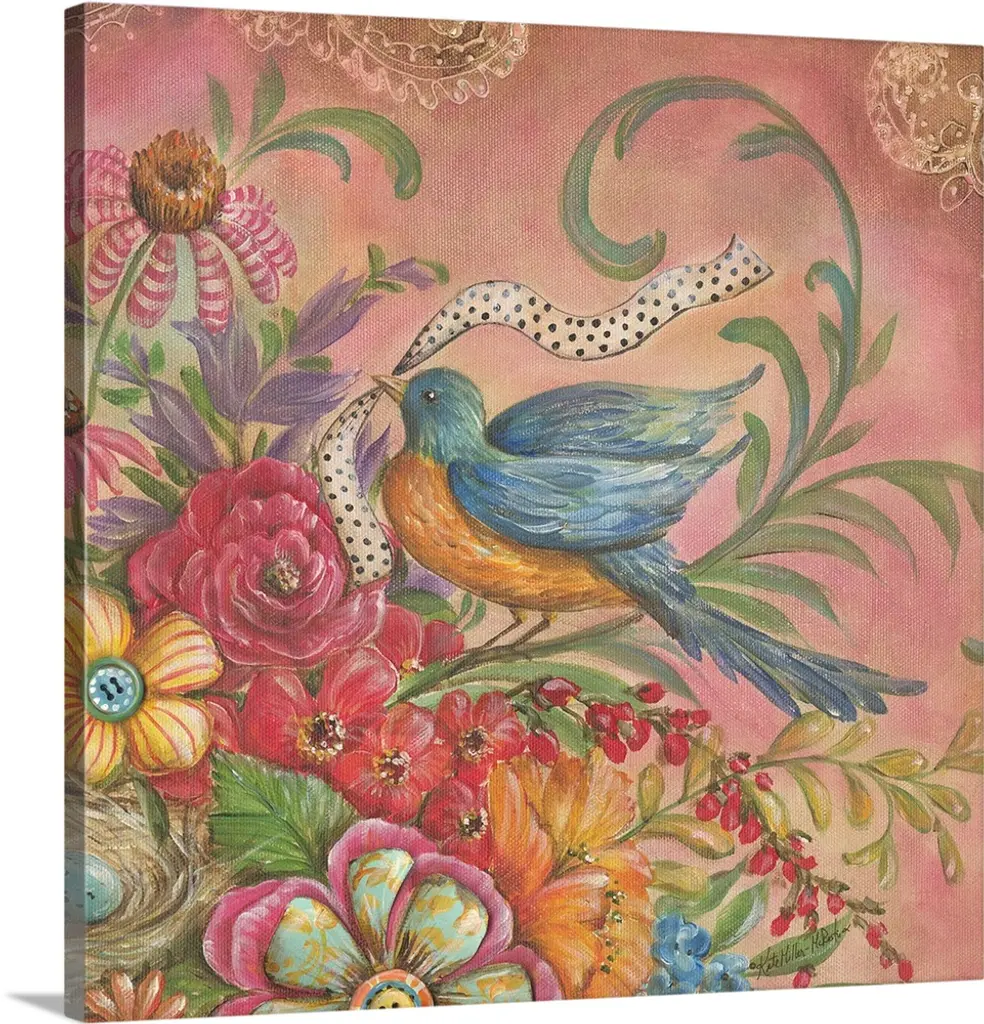 Artist: Irina Trzaskos StudioSubject: FloralStyle: Mid-Century ModernProduct Type: Gallery-Wrapped Canvas ArtMade in USAThis ready to hang, gallery-wrapped art piece features a colorful bird over a floral scene.Connecticut based artist, designer and illustrator, Irina Trzaskos, is best known for her elegant and colorful watercolor style. Her artwork is inspired by culture, art history and nature. She was born and grew up in Moldova. After earning her degree in Interior Design, Irina worked as an interior designer for a textile company, and as an administrator of one of the largest antique furniture importing companies, in Chisinau the capital of Moldova. In 2012 Irina moved to United States, following her heart and fulfilling her dream of becoming an artist.Giclee (jee-clay) is an advanced printmaking process for creating high quality fine art reproductions. The attainable excellence that Giclee printmaking affords makes the reproduction virtually indistinguishable from the original piece. The result is wide acceptance of Giclee by galleries, museums, and private collectors. Gallery wrap is a method of stretching an artist's canvas so that the canvas wraps around the sides and is secured a hidden, wooden frame. This method of stretching and preparing a canvas allows for a frameless presentation of the finished painting.