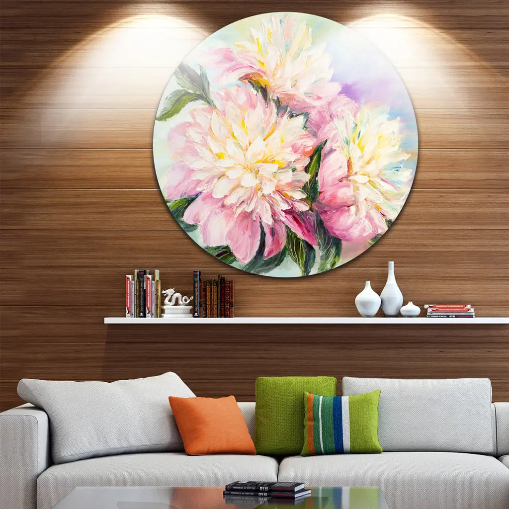 Blooming Pink Peonies, Floral Disc Metal Wall Art, 11"