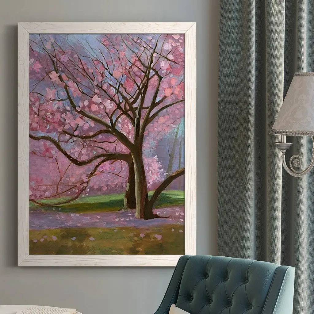 Blooming Sakura Flowers, Floral Round Wall Art, 23"