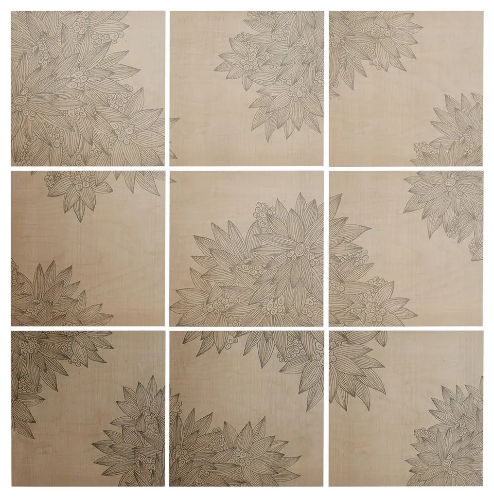 Make your own mosaic. With our wood wall art's multi-square design, you have the power to adjust the spacing between each section to form exactly the right look. Play around with the designs by removing a panel in strategic locations or arrange them around another piece to fill out the look. Available in three sizes.