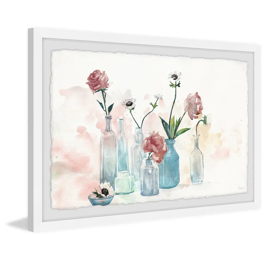 'Blooms And Bottles' Framed Painting Print - Multi-Color - 12 X 8