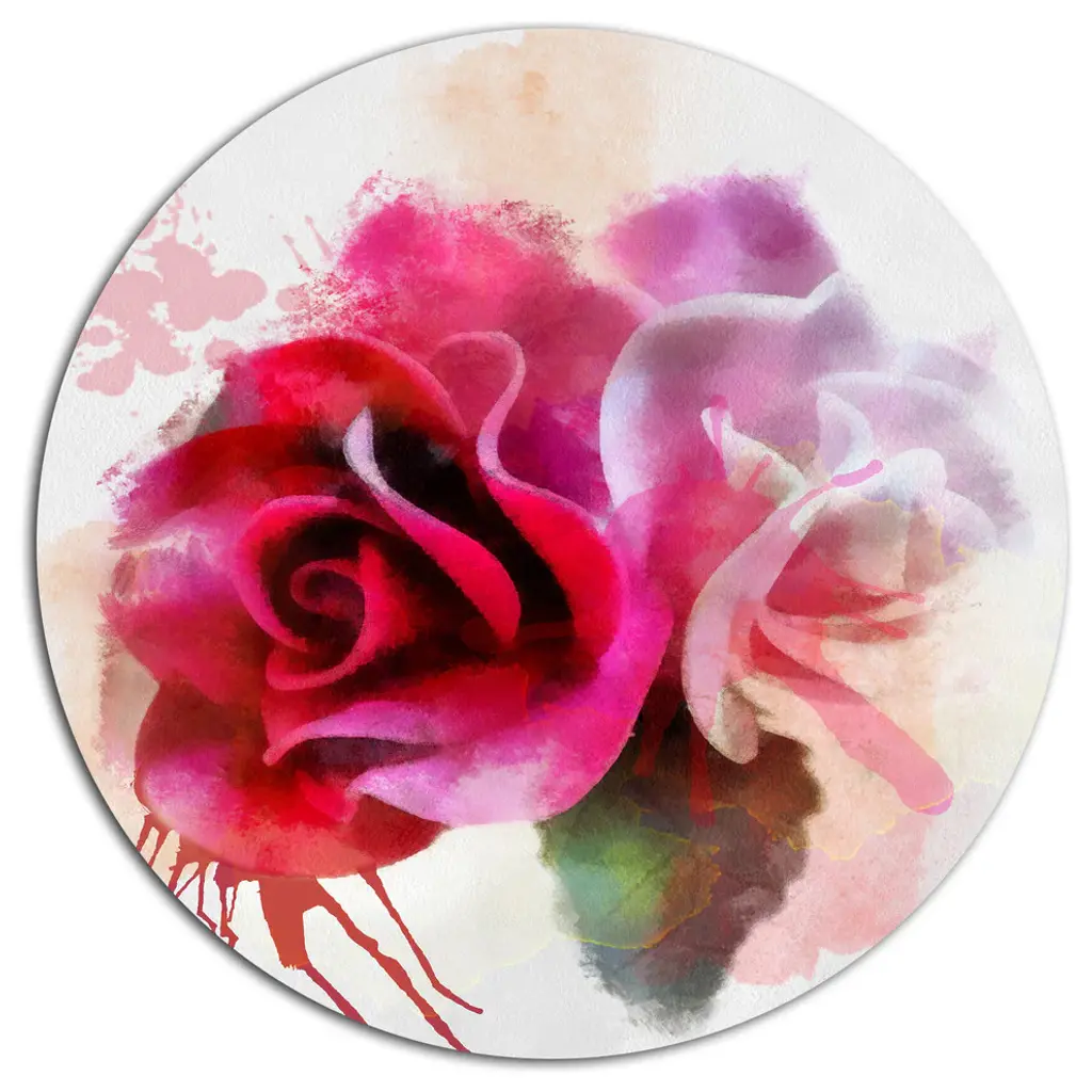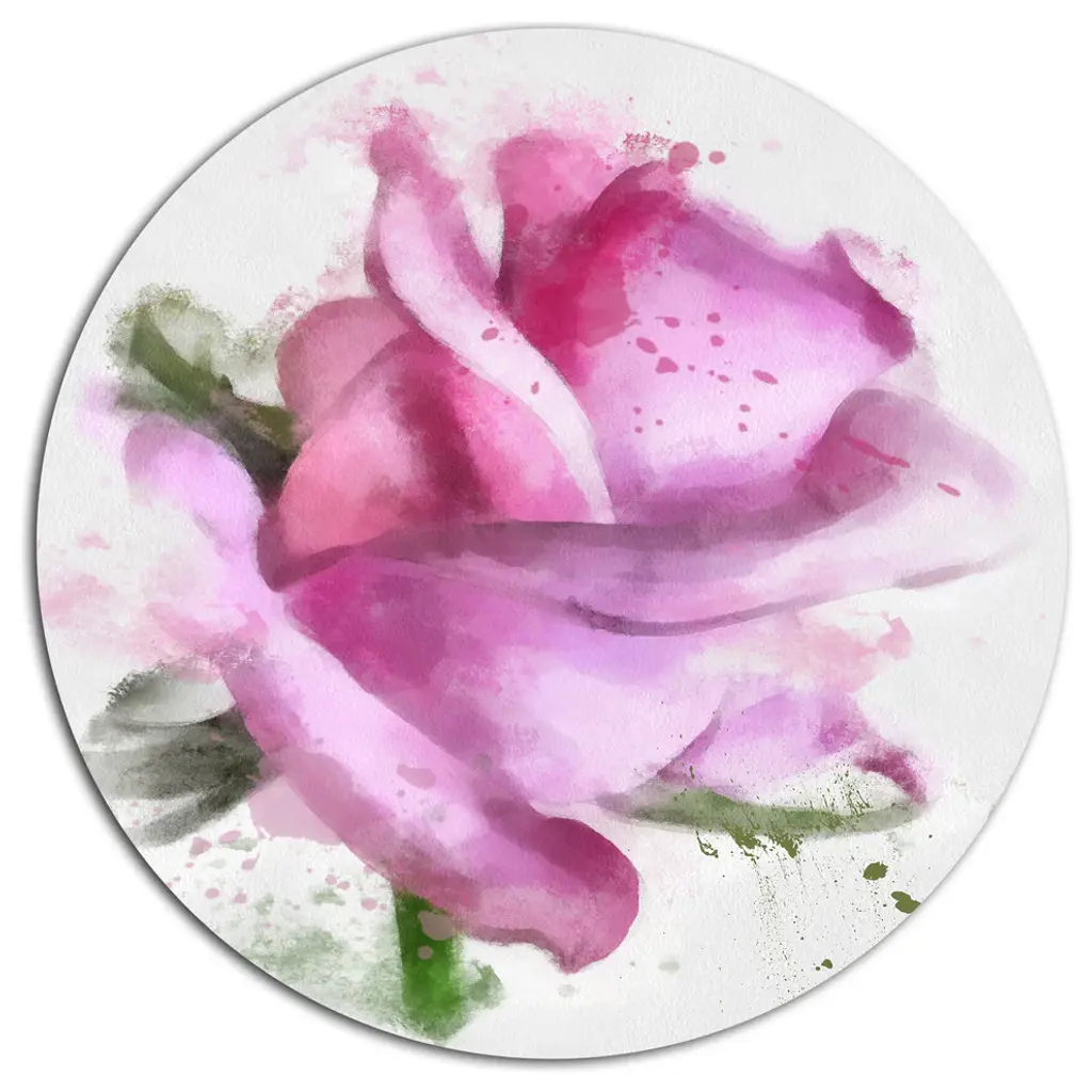 Bring Contemporary Abstraction to your home with this large Circle Metal wall art. This Bloomy Pink Rose Watercolor Drawing Metal Artwork makes it the focal point of any room or office. - White Gloss Coating ensures colors are extra vibrant with light reflection.- Aluminum grade Sheet Metal with 1 inch mounting frame on the back giving the illusion that the artwork is floating on the wall..- Mounting Brackets are included along with instructions.- High Quality Digital images are created directly into a glossy aluminum panel producing a stunning and captivating print into the glossy finish of the metal.- Water, Fire and Scratch resistant HD Aluminum panels.- Looks better than any photo paper and guaranteed to last at least 20 years- Easy to clean with a microfiber cloth. Colors are far superior to regular Canvas Art. - Easy to Hang