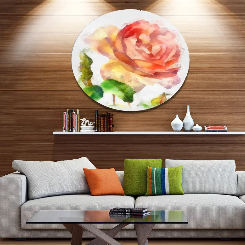 Bring Contemporary Abstraction to your home with this large Circle Metal wall art. This Bloomy Red Rose Watercolor Drawing Metal Artwork makes it the focal point of any room or office. - White Gloss Coating ensures colors are extra vibrant with light reflection.- Aluminum grade Sheet Metal with 1 inch mounting frame on the back giving the illusion that the artwork is floating on the wall..- Mounting Brackets are included along with instructions.- High Quality Digital images are created directly into a glossy aluminum panel producing a stunning and captivating print into the glossy finish of the metal.- Water, Fire and Scratch resistant HD Aluminum panels.- Looks better than any photo paper and guaranteed to last at least 20 years- Easy to clean with a microfiber cloth. Colors are far superior to regular Canvas Art. - Easy to Hang