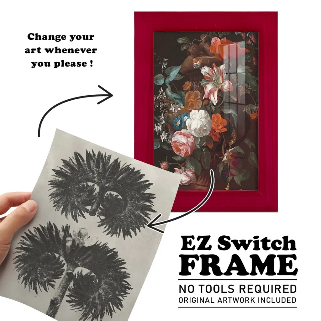 Blossfeldt Botanical V -EZ SWITCH Framed Print w/glass-Cherry Red A delightful, framed print. Featuring a solid wood frame with real wood glass. This premium print is giclee quality. In addition, every frame features a removable back and table top stand. This allows you to change your art in the future or to just stand the art on a table for a new look. We are sure you'll enjoy our new series of EZ SWITCH Framed Art. Solid Wood Frame Real Glass Removable / Replaceable Art Built in Tabletop Stand Sizes range from 4x6 up to 12x15 - buy just one or pair them up as sets as you see fit.