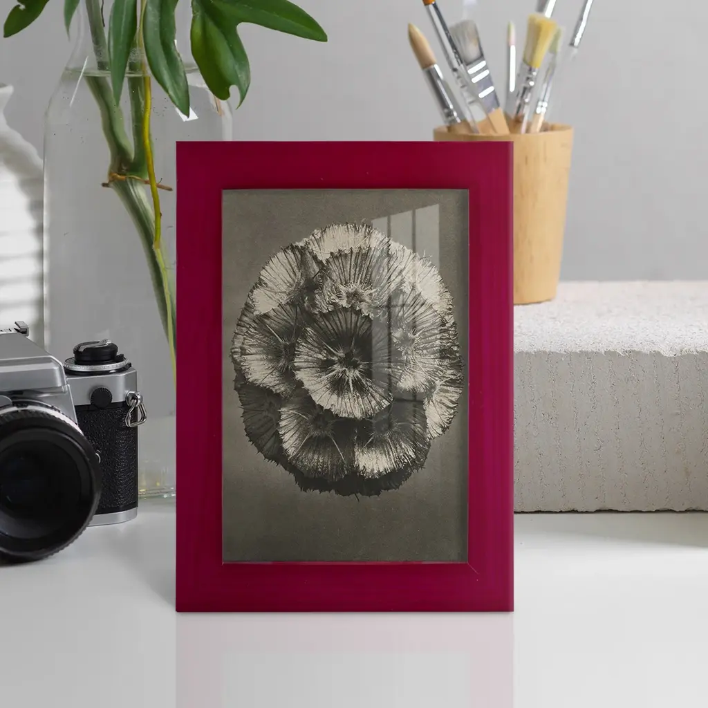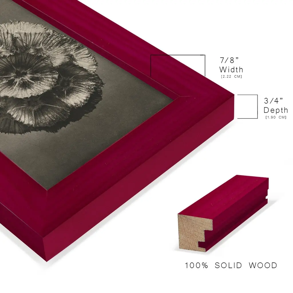 Blossfeldt Flower III -EZ SWITCH Framed Print w/glass-Cherry Red A delightful, framed print. Featuring a solid wood frame with real wood glass. This premium print is giclee quality. In addition, every frame features a removable back and table top stand. This allows you to change your art in the future or to just stand the art on a table for a new look. We are sure you'll enjoy our new series of EZ SWITCH Framed Art. Solid Wood Frame Real Glass Removable / Replaceable Art Built in Tabletop Stand Sizes range from 4x6 up to 12x15 - buy just one or pair them up as sets as you see fit.