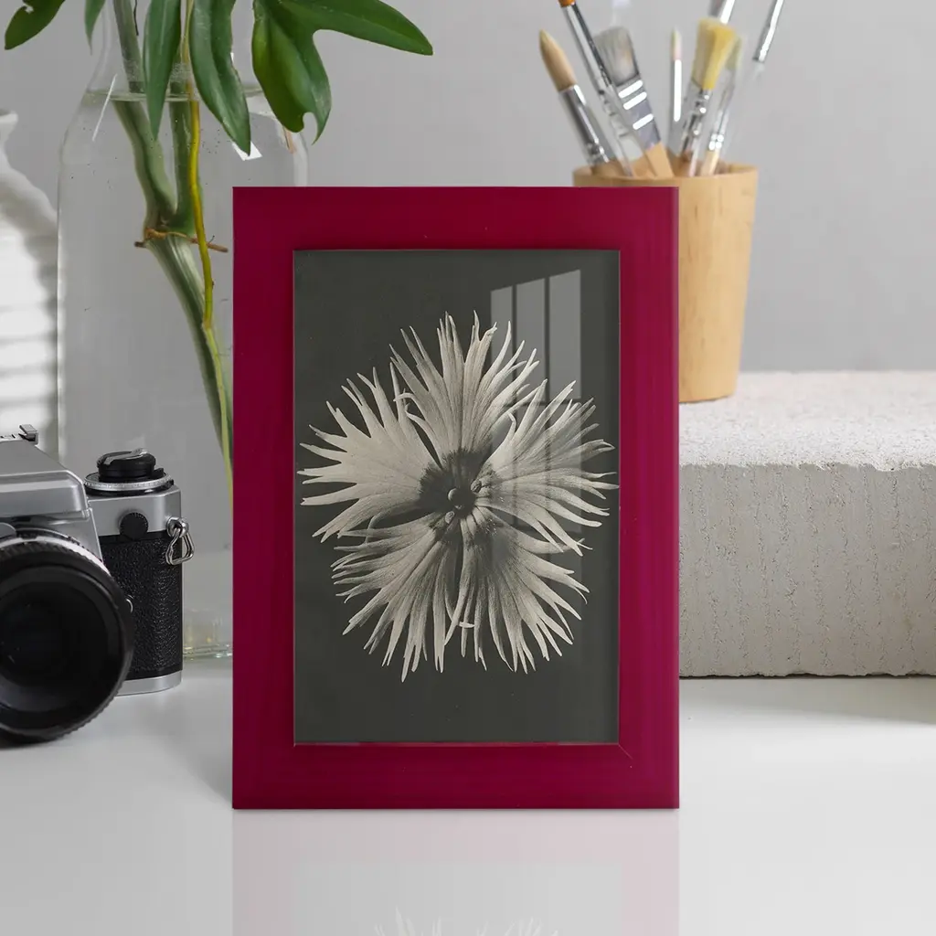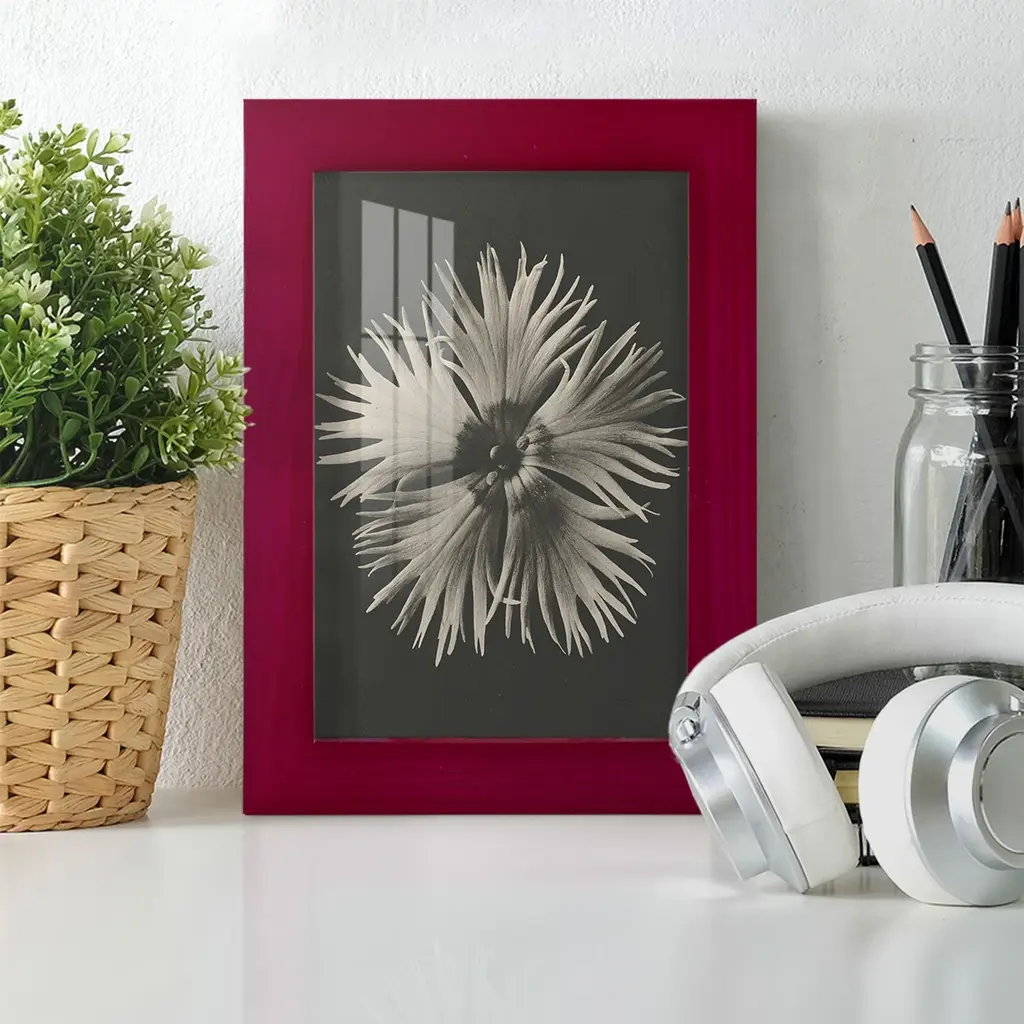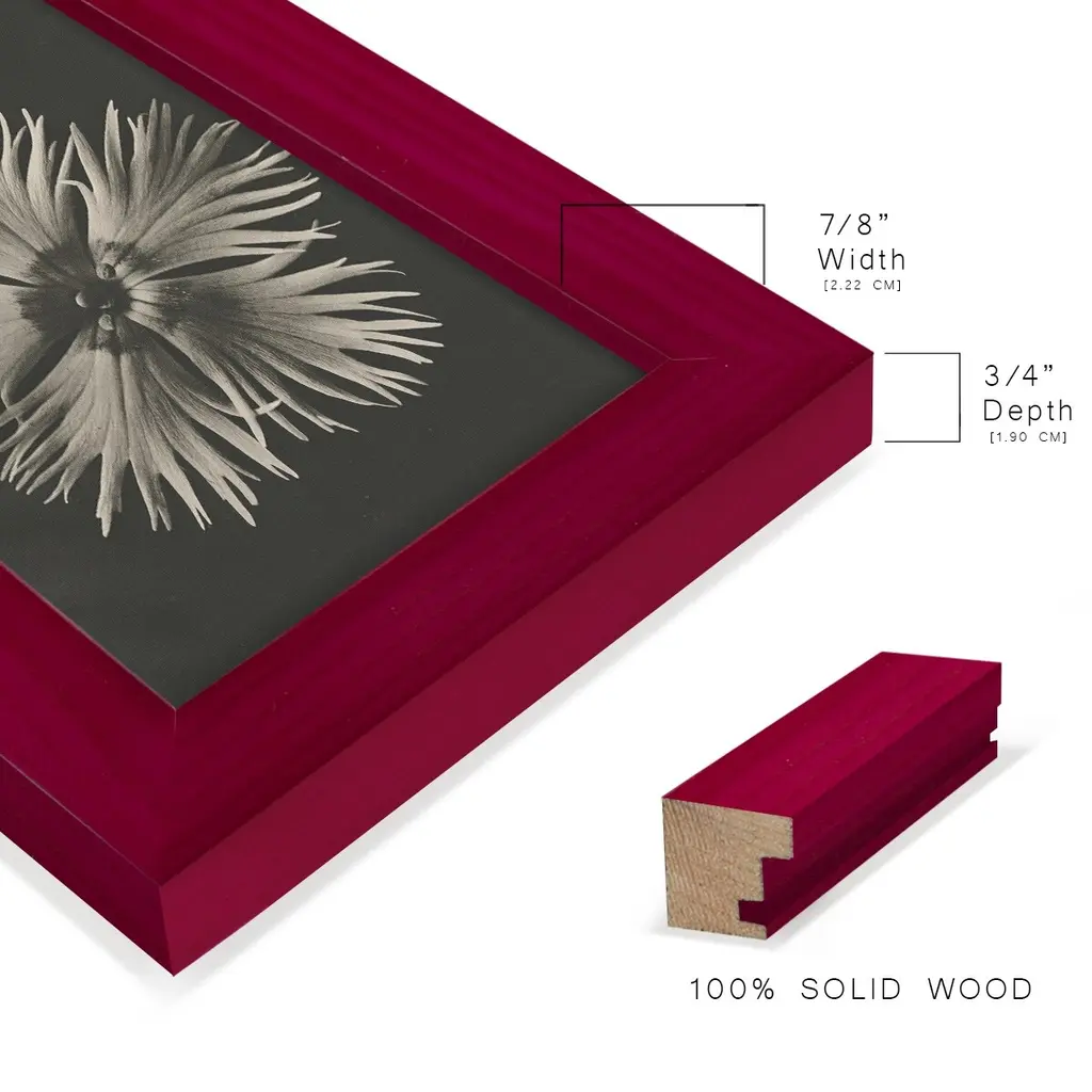 Blossfeldt Flower IV -EZ SWITCH Framed Print w/glass-Cherry Red A delightful, framed print. Featuring a solid wood frame with real wood glass. This premium print is giclee quality. In addition, every frame features a removable back and table top stand. This allows you to change your art in the future or to just stand the art on a table for a new look. We are sure you'll enjoy our new series of EZ SWITCH Framed Art. Solid Wood Frame Real Glass Removable / Replaceable Art Built in Tabletop Stand Sizes range from 4x6 up to 12x15 - buy just one or pair them up as sets as you see fit.