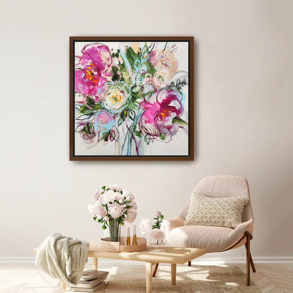 Blossom Whispers Canvas Giclee - Framed / Dark Walnut / 40x40