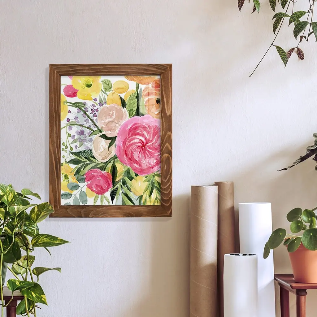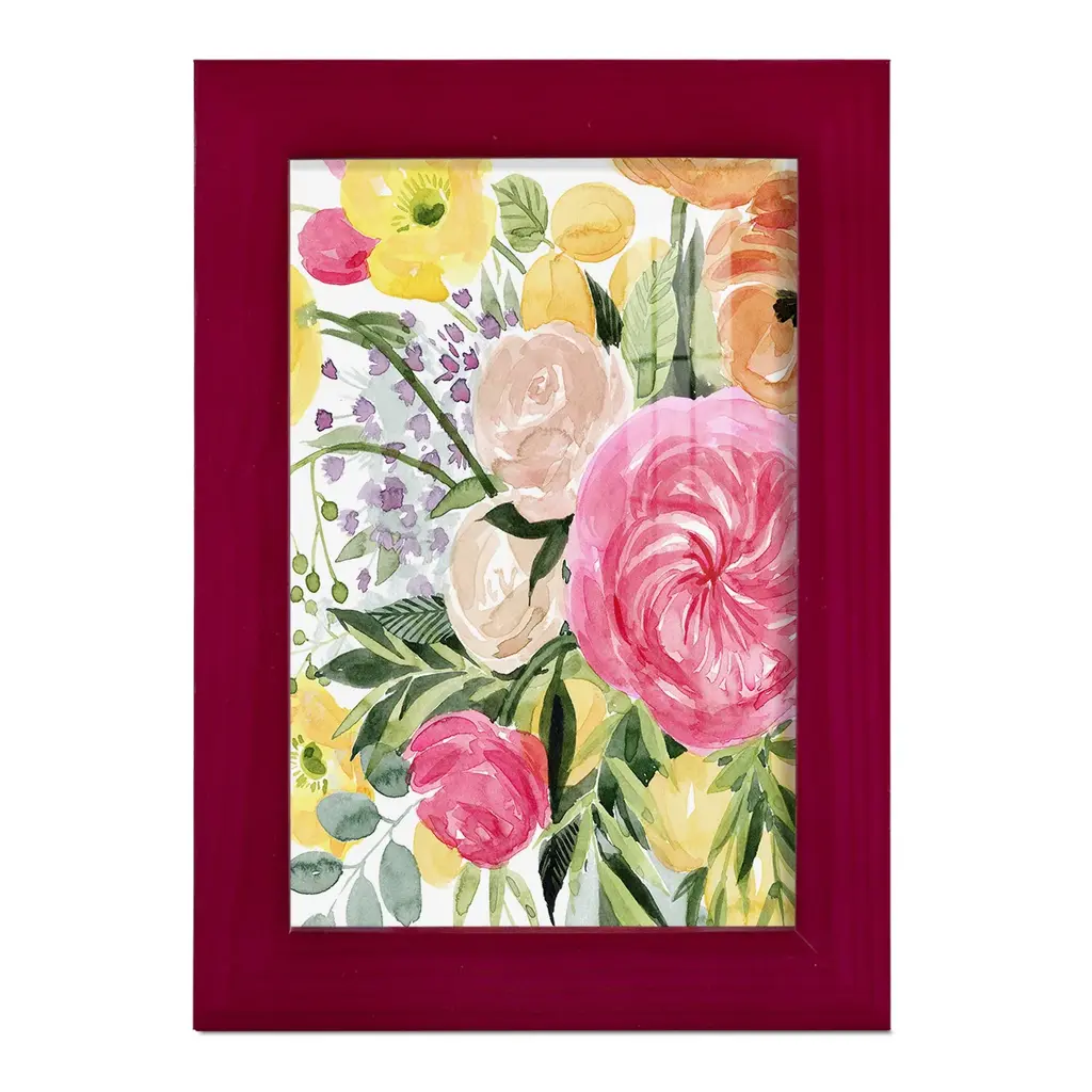 Blossomy Gathering I -EZ SWITCH Framed Print w/glass-Cherry Red A delightful, framed print. Featuring a solid wood frame with real wood glass. This premium print is giclee quality. In addition, every frame features a removable back and table top stand. This allows you to change your art in the future or to just stand the art on a table for a new look. We are sure you'll enjoy our new series of EZ SWITCH Framed Art. Solid Wood Frame Real Glass Removable / Replaceable Art Built in Tabletop Stand Sizes range from 4x6 up to 12x15 - buy just one or pair them up as sets as you see fit.
