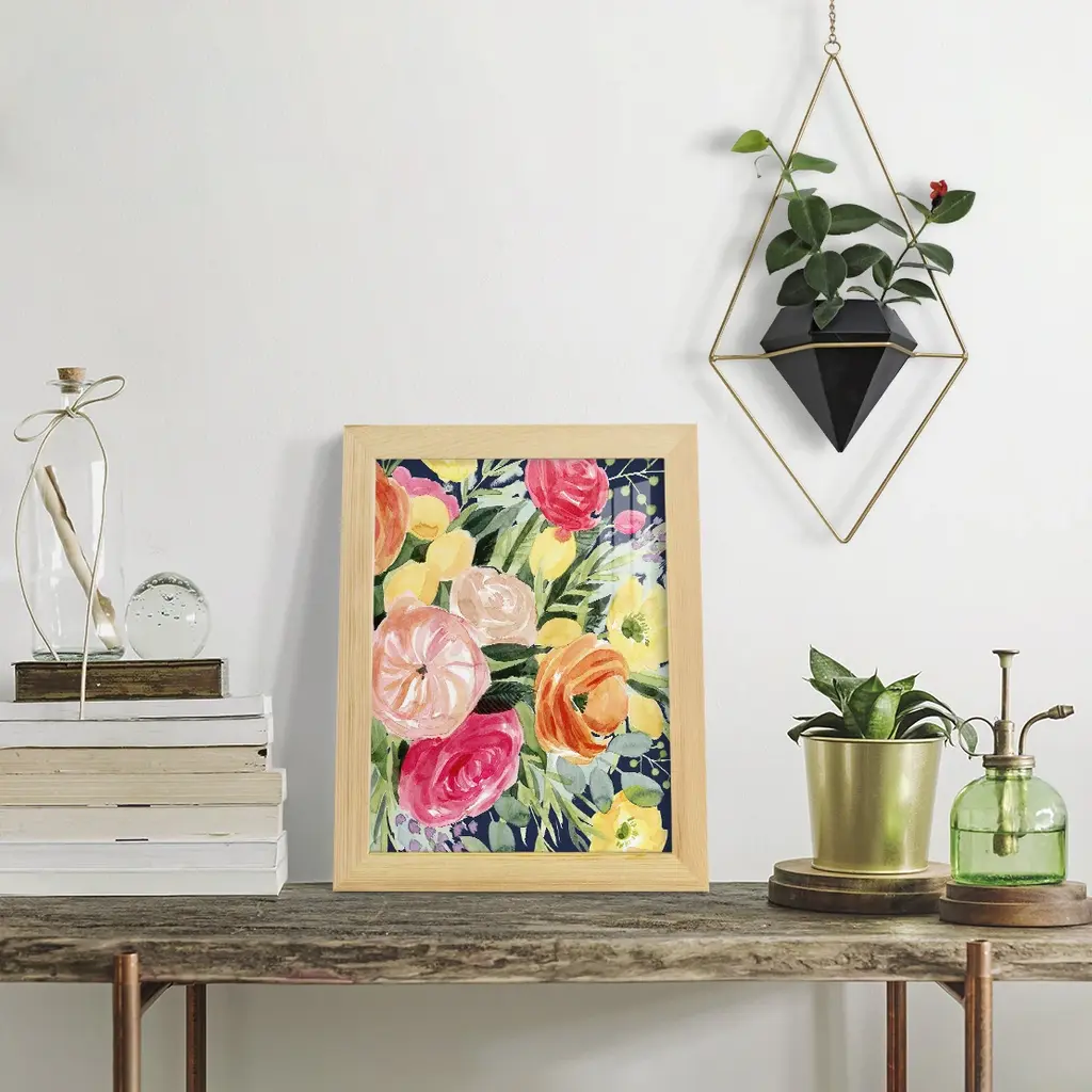Blossomy Gathering IV -EZ SWITCH Framed Print w/glass-Cherry Red A delightful, framed print. Featuring a solid wood frame with real wood glass. This premium print is giclee quality. In addition, every frame features a removable back and table top stand. This allows you to change your art in the future or to just stand the art on a table for a new look. We are sure you'll enjoy our new series of EZ SWITCH Framed Art. Solid Wood Frame Real Glass Removable / Replaceable Art Built in Tabletop Stand Sizes range from 4x6 up to 12x15 - buy just one or pair them up as sets as you see fit.