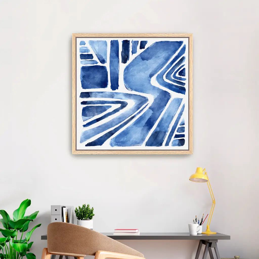 Blue Abstract Geometric Canvas Giclee - Framed / Black / 20x20