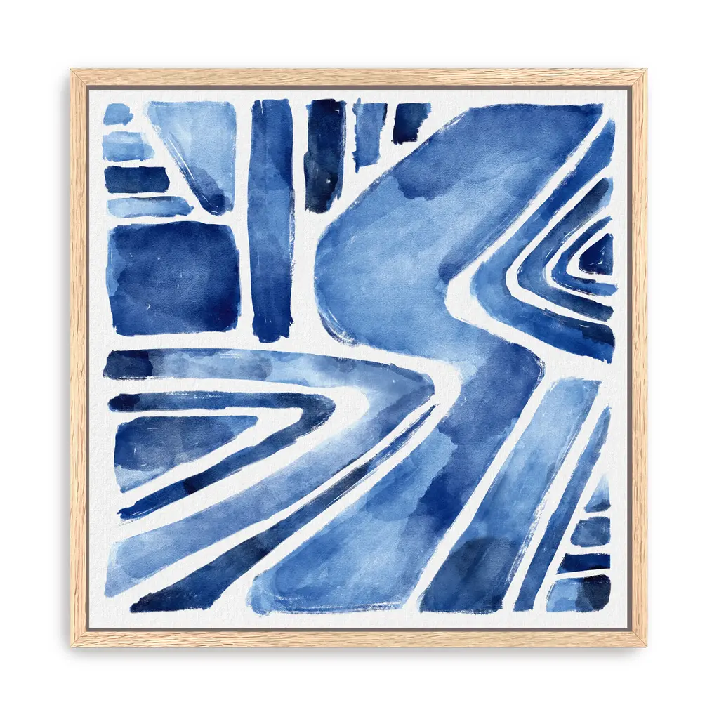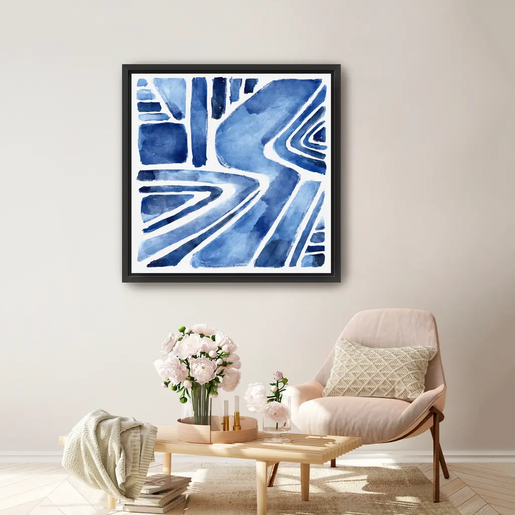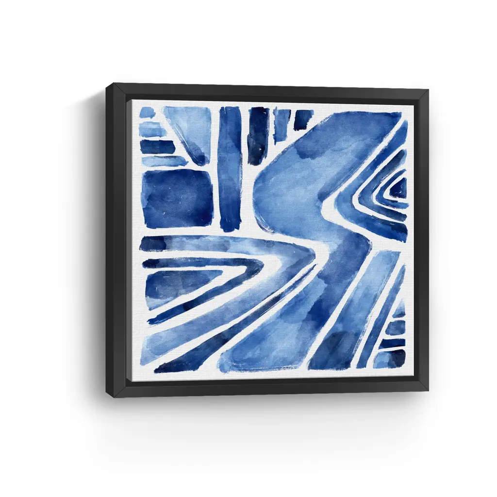 Blue Abstract Geometric Canvas Giclee - Framed / Black / 30x30