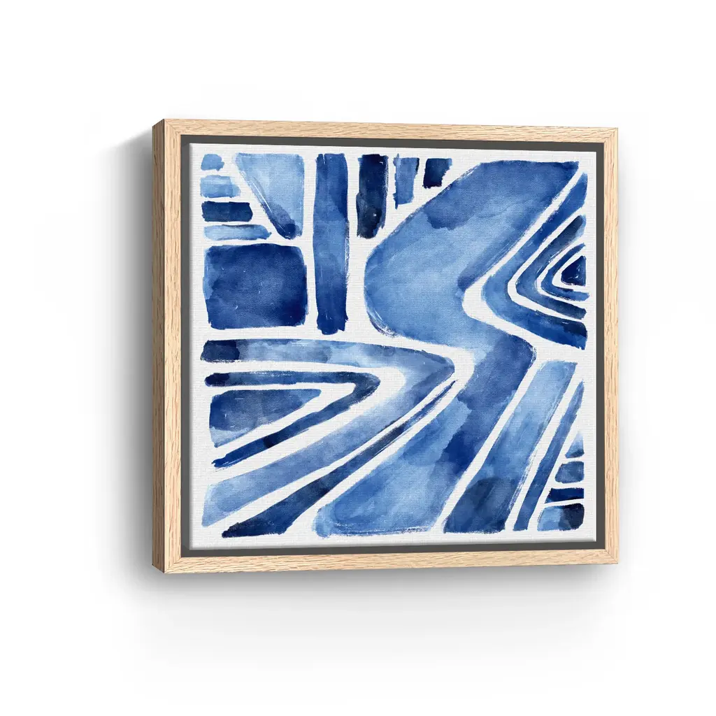 Transform your living space with this mesmerizing blue abstract canvas art "Blue Abstract Geometric" by Gia Hoang. Featuring a captivating blend of blue hues, this artwork brings a sense of tranquility and depth to any room. The abstract design evokes a serene atmosphere, making it a perfect addition to both contemporary and classic interiors. Available in black frame, dark walnut frame, oak frame, or as a wrapped canvas. Our Gallery Wrap Canvas Prints are proudly assembled with high quality materials in California, USA. Each piece is printed on a thick, archival grade canvas using Giclee technology. It is then hand-stretched by our experienced artisans over solid wood bars, which will not warp over time. The final product is a piece personally crafted for you to confidently display on your wall. Care and Assembly: Ensure that the location of your piece has little to no exposure to heat, sunlight, and moisture. Wipe clean, only if needed. Each piece includes a sawtooth hanger to hang on your wall horizontally.