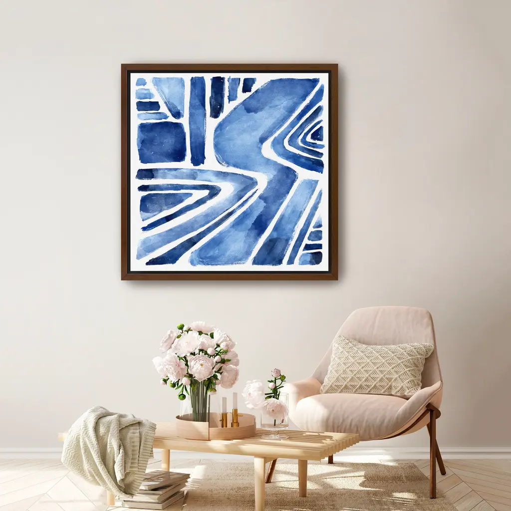 Blue Abstract Geometric Canvas Giclee - Framed / Dark Walnut / 30x30
