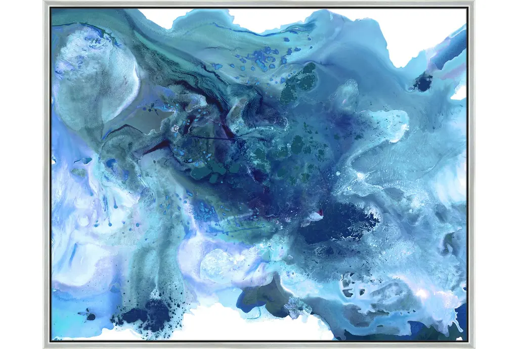 Designed by us and available only at One Kings Lane: This photograph of swirling blue agate brings an impressive sense of movement and color to your wall. Printed on high-quality paper and displayed in a matte white frame, this piece arrives ready to hang.