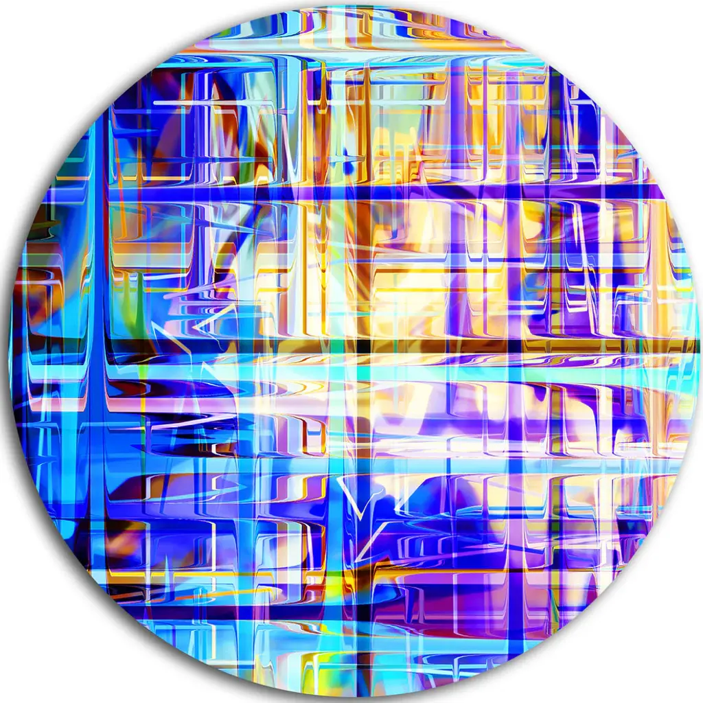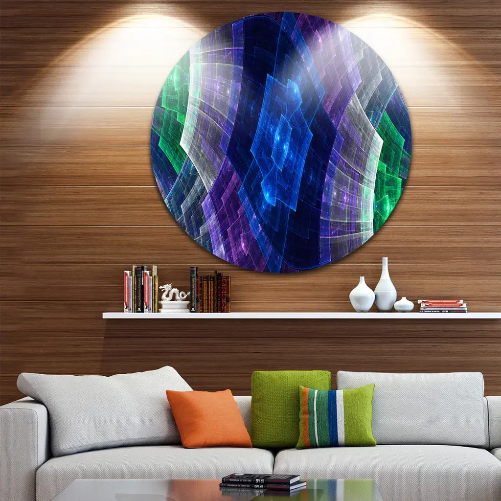 Bring Contemporary Abstraction to your home with this large Circle Metal wall art. This Blue and Green Fractal Flower Grid Metal Artwork makes it the focal point of any room or office. - White Gloss Coating ensures colors are extra vibrant with light reflection.- Aluminum grade Sheet Metal with 1 inch mounting frame on the back giving the illusion that the artwork is floating on the wall..- Mounting Brackets are included along with instructions.- High Quality Digital images are created directly into a glossy aluminum panel producing a stunning and captivating print into the glossy finish of the metal.- Water, Fire and Scratch resistant HD Aluminum panels.- Looks better than any photo paper and guaranteed to last at least 20 years- Easy to clean with a microfiber cloth. Colors are far superior to regular Canvas Art. - Easy to Hang