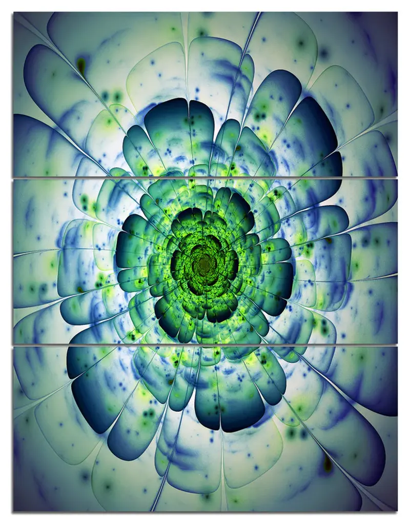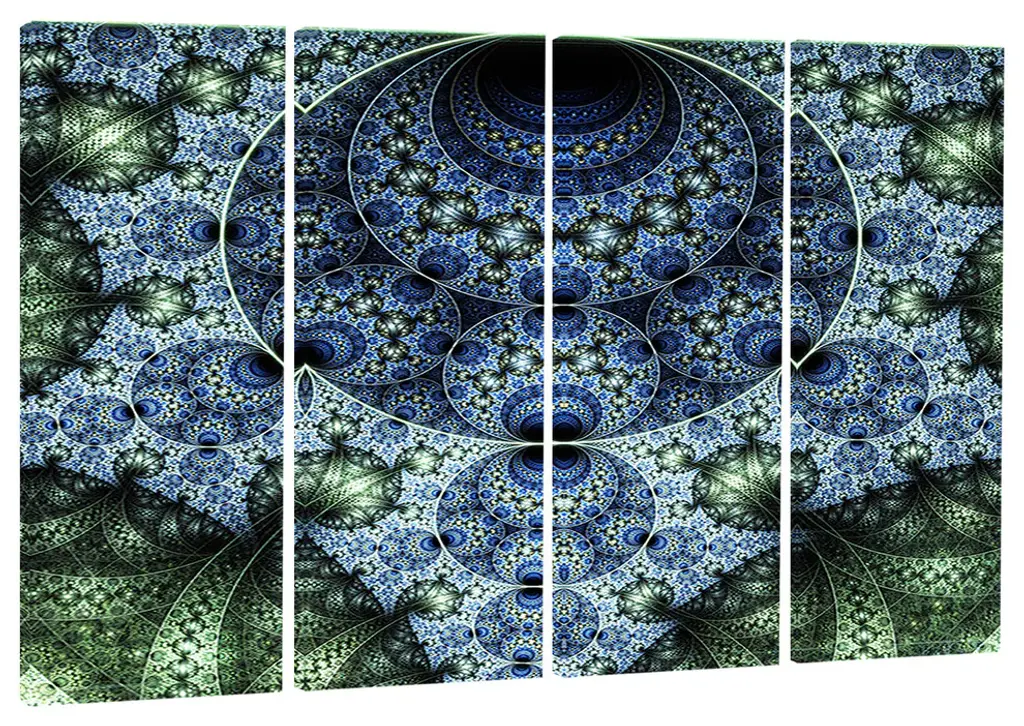 "Blue And Green Spiral Fractal" Art Digital Canvas Print, 4 Panels, 48"x28"