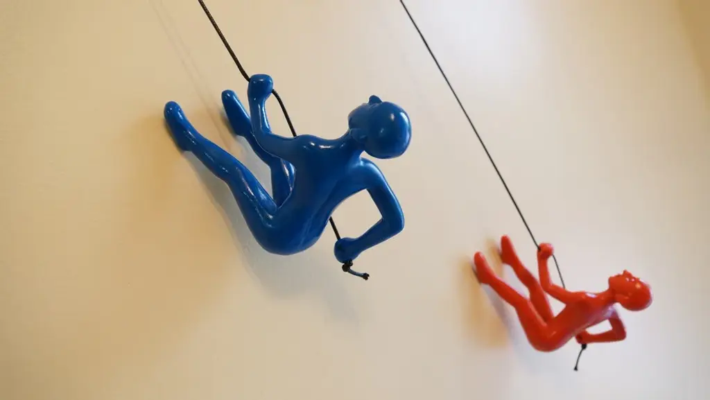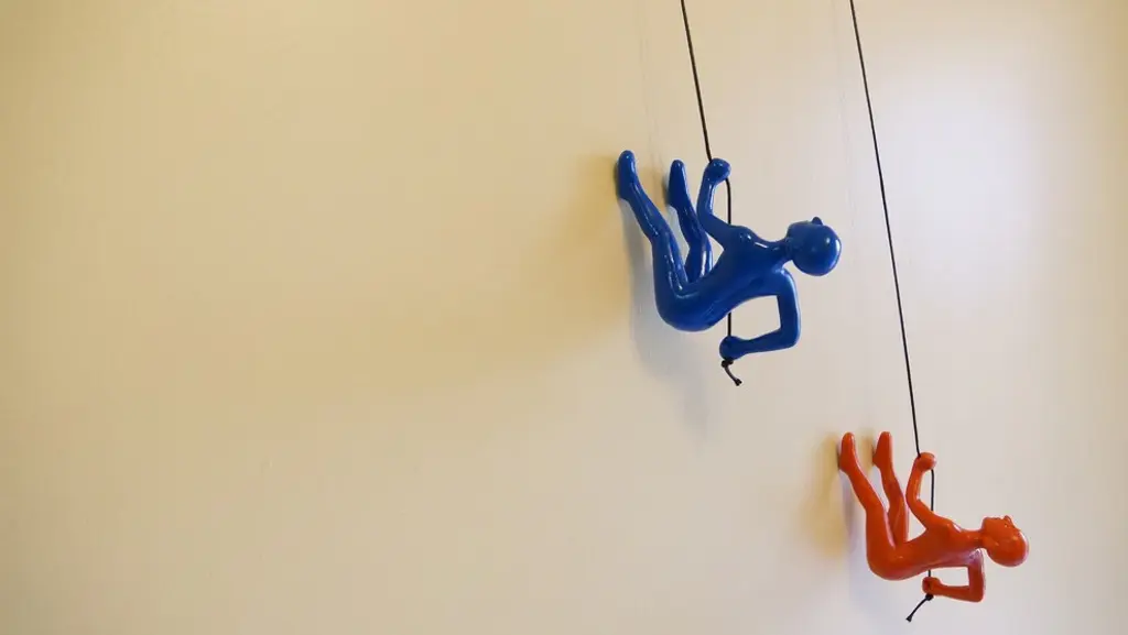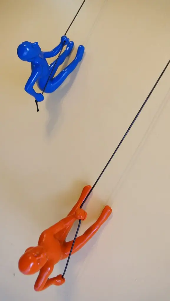 Blue And Orange Position #2 Climbing Man Wall Art, Set Of 2