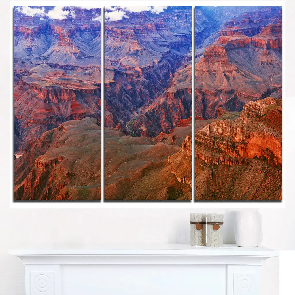 "Blue And Red Grand Canyon View" Metal Wall Art, 3 Panels, 36"x28"