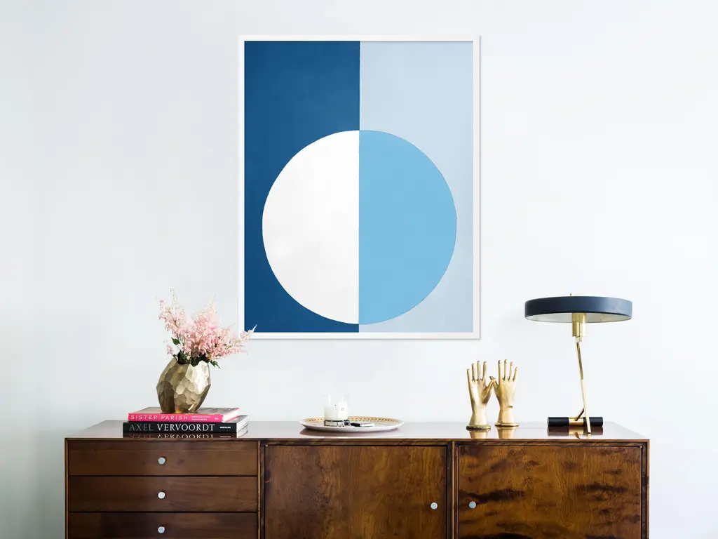 DESCRIPTION: Blue & White Forever by Stephanie Henderson in White Frame, Medium Art Print SPECIFICATIONS: Type: Framed Paper. Framed Size (in): 28.5x36. Orientation: Vertical. Flush/Float/Matted: Flush. Frame Color: White. Hanging Hardware: Picture Perfect. FRAMING: Each art work arrives framed and ready to hang. We use handmade frames with a plexiglass glazing front, because it offers less glare than standard glass. At this time, we only offer framed prints. ARTIST BIO: Stephanie Lear Henderson is a painter living in Ponte Vedra Beach, Florida. Her work can be found in collections throughout the US and Canada. Working primarily in hard-edge abstraction, she also occasionally paints representational works in oil. A native of Thomasville, Georgia, Stephanie earned a B.A. in English Literature from the University of Virginia and an M.A. in Journalism from the University of Georgia. Stephanie’s work revolves around bold, saturated color and how colors communicate with each other and affect the observer. Her paintings contain forms that are simple, allowing the colors to express themselves without complications. Stephanie’s work reveals focus, precision, and an insatiable appetite for evocative combinations of color. She revels in the challenge of painting perfectly clean lines freehand with a brush. No tape. No masking.Stephanie embraces the belief that color alters mood, outlook, and brings absolute joy to life. Stephanie's artwork has appeared in a multitued of publications including House Beautiful and The CUT.