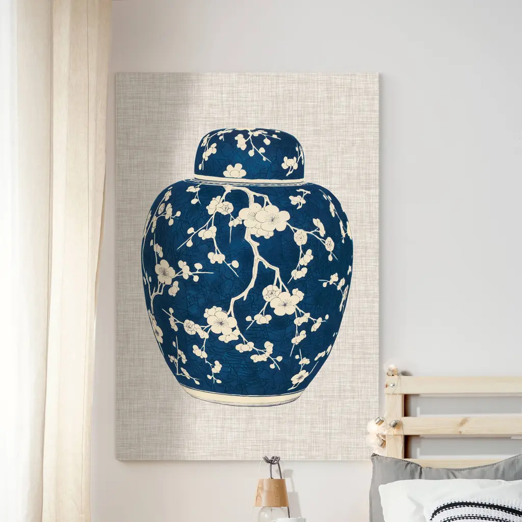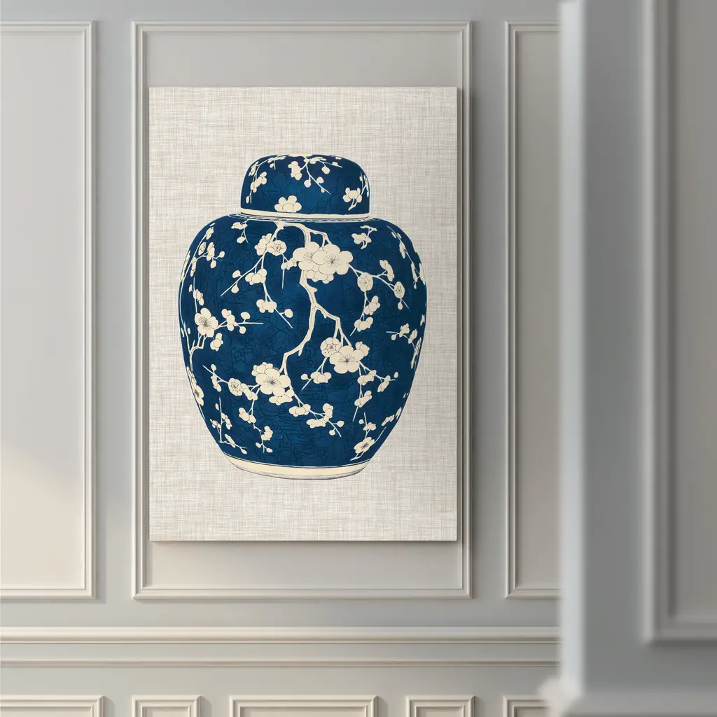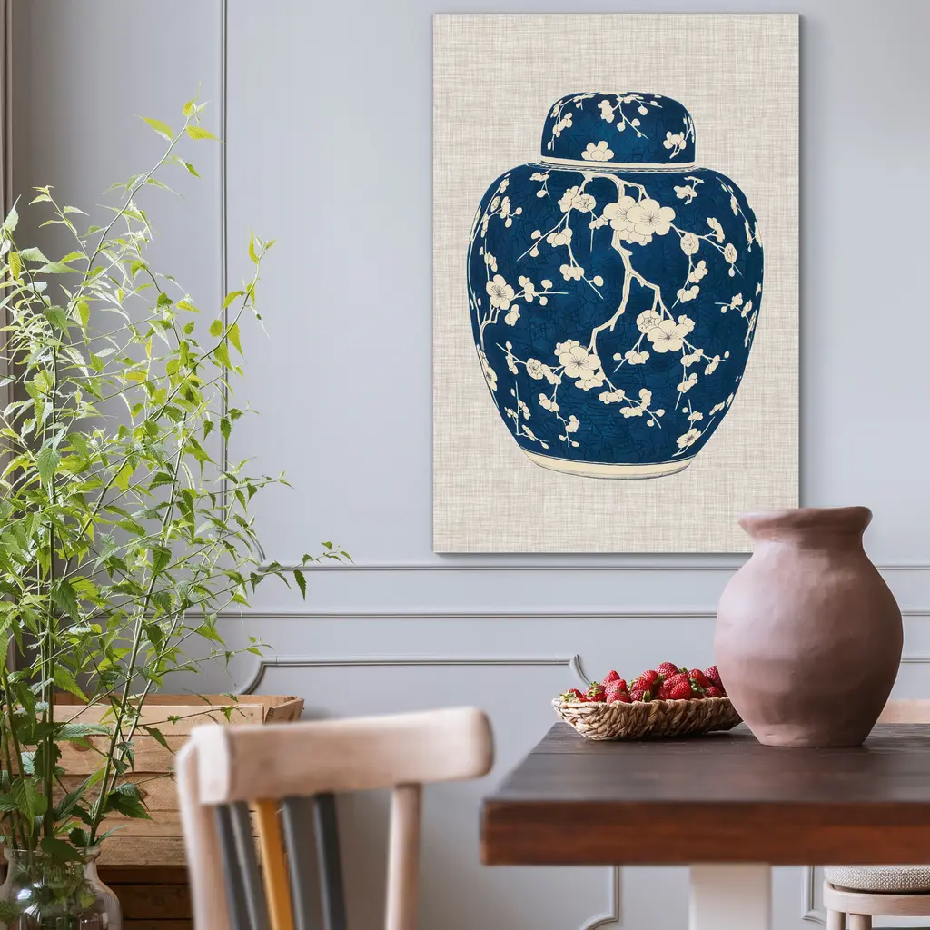 Blue & White Ginger Jar-Premium Gallery Wrapped Canvas - Ready to Hang A premium hand stretched gallery wrapped canvas print created to last. Featuring a beveled a solid wood stretcher bar, each piece comes ready to hand 5 SIZES AVAILABLE 8''X12'' - Overall Size 16''x20'' - Overall Size 18''x27'' - Overall Size 24''x36'' - Overall Size 32''x48'' - Overall Size Each piece is made to order. Built to Last Each piece comes ready to hang Solid wood stretcher Fade and Water resistant Made domestically