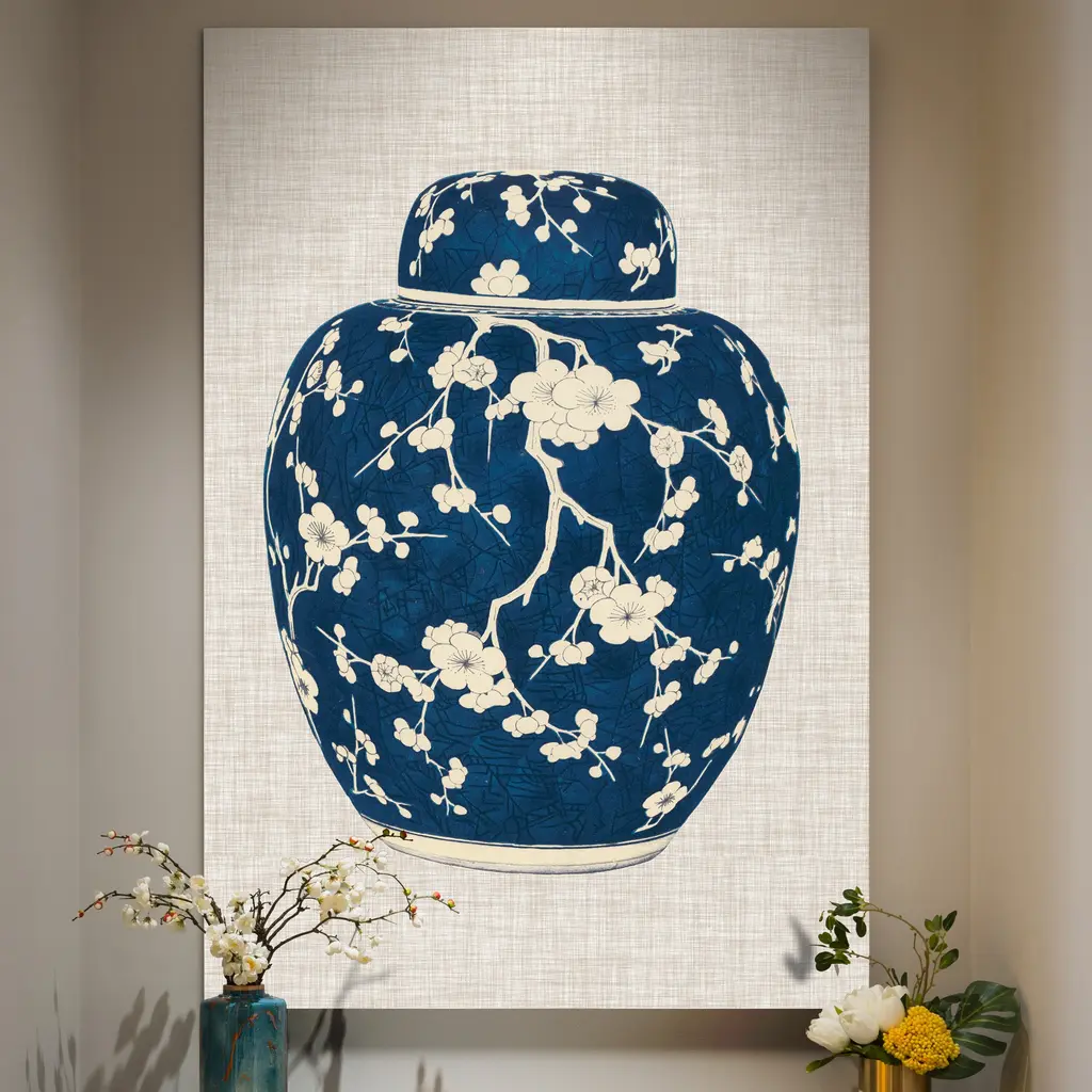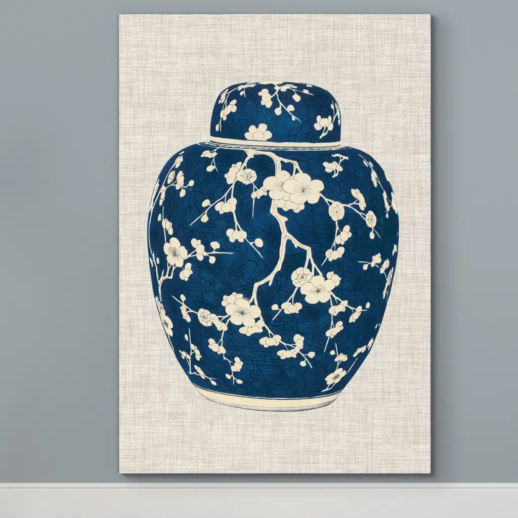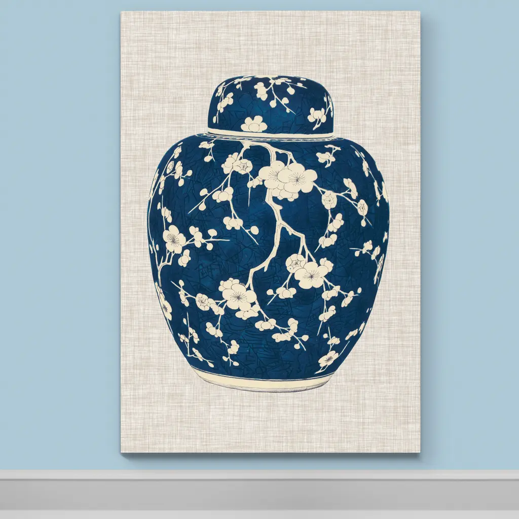 Blue & White Ginger Jar-Premium Gallery Wrapped Canvas - Ready to Hang A premium hand stretched gallery wrapped canvas print created to last. Featuring a beveled a solid wood stretcher bar, each piece comes ready to hand 5 SIZES AVAILABLE 8''X12'' - Overall Size 16''x20'' - Overall Size 18''x27'' - Overall Size 24''x36'' - Overall Size 32''x48'' - Overall Size Each piece is made to order. Built to Last Each piece comes ready to hang Solid wood stretcher Fade and Water resistant Made domestically