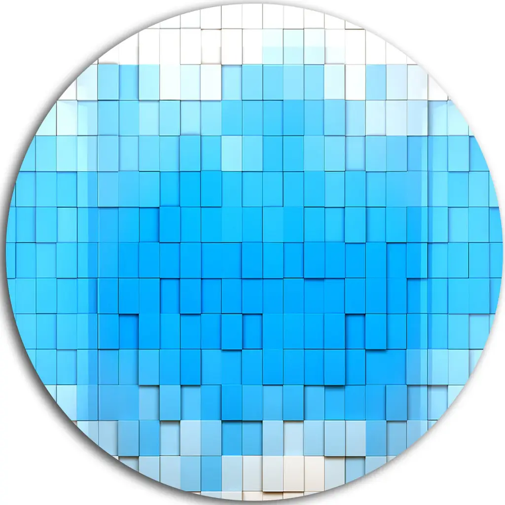 Bring Contemporary Abstraction to your home with this large Circle Metal wall art. This Blue and White Mosaic Cubes Metal Artwork makes it the focal point of any room or office. - White Gloss Coating ensures colors are extra vibrant with light reflection.- Aluminum grade Sheet Metal with 1 inch mounting frame on the back giving the illusion that the artwork is floating on the wall..- Mounting Brackets are included along with instructions.- High Quality Digital images are created directly into a glossy aluminum panel producing a stunning and captivating print into the glossy finish of the metal.- Water, Fire and Scratch resistant HD Aluminum panels.- Looks better than any photo paper and guaranteed to last at least 20 years- Easy to clean with a microfiber cloth. Colors are far superior to regular Canvas Art. - Easy to Hang