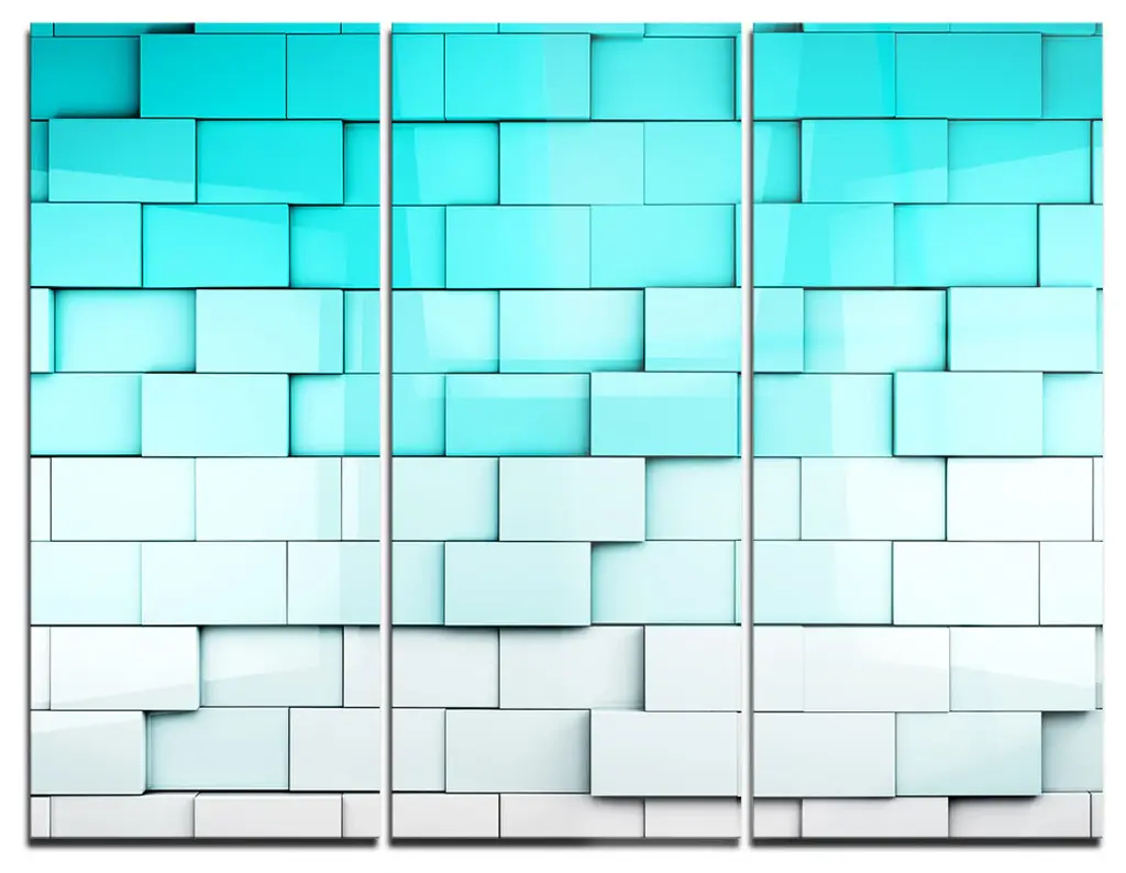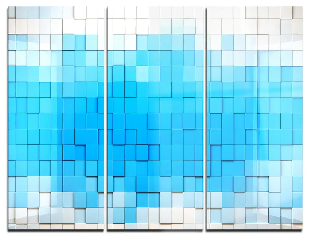 "Blue And White Mosaic Cubes" Metal Wall Art, 3 Panels, 36"x28"