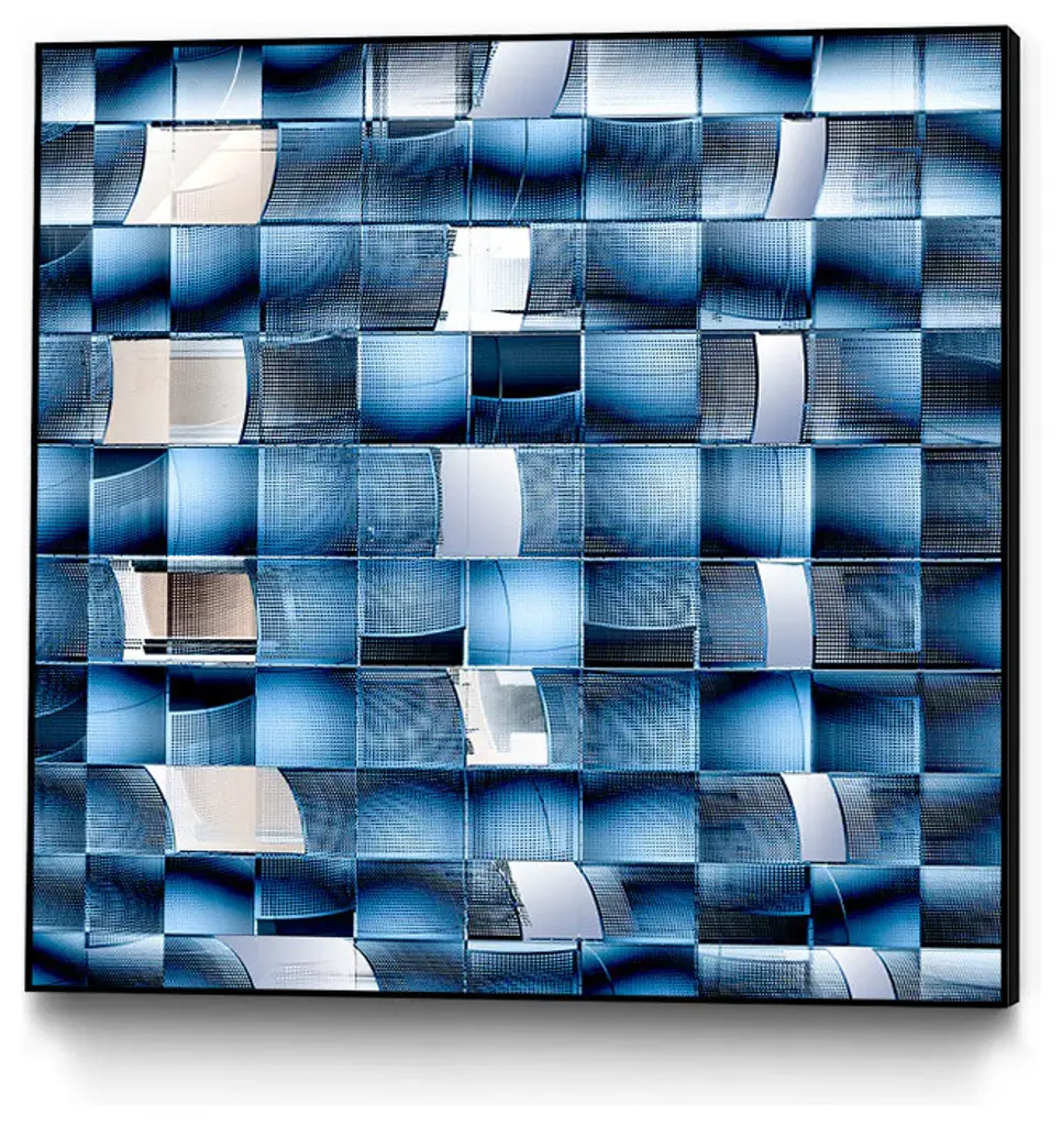 Bring contemporary abstraction to your home with this large 36W x 28H Metal Wall Art. This Blue and White Mosaic Cubes Metal Artwork makes it the focal point of any room or office. - White gloss coating ensures colors are extra vibrant with light reflection.- Aluminum grade sheet metal with 1-inch mounting frame on the back giving the illusion that the artwork is floating on the wall.- Mounting brackets are included along with instructions.- High quality digital images are created directly into a glossy aluminum panel producing a stunning and captivating print into the glossy finish of the metal.- Water, fire and scratch resistant HD aluminum panels.- Looks better than any photo paper and guaranteed to last at least 20 years- Easy to clean with a microfiber cloth. Colors are far superior to regular canvas art. - Easy to hang