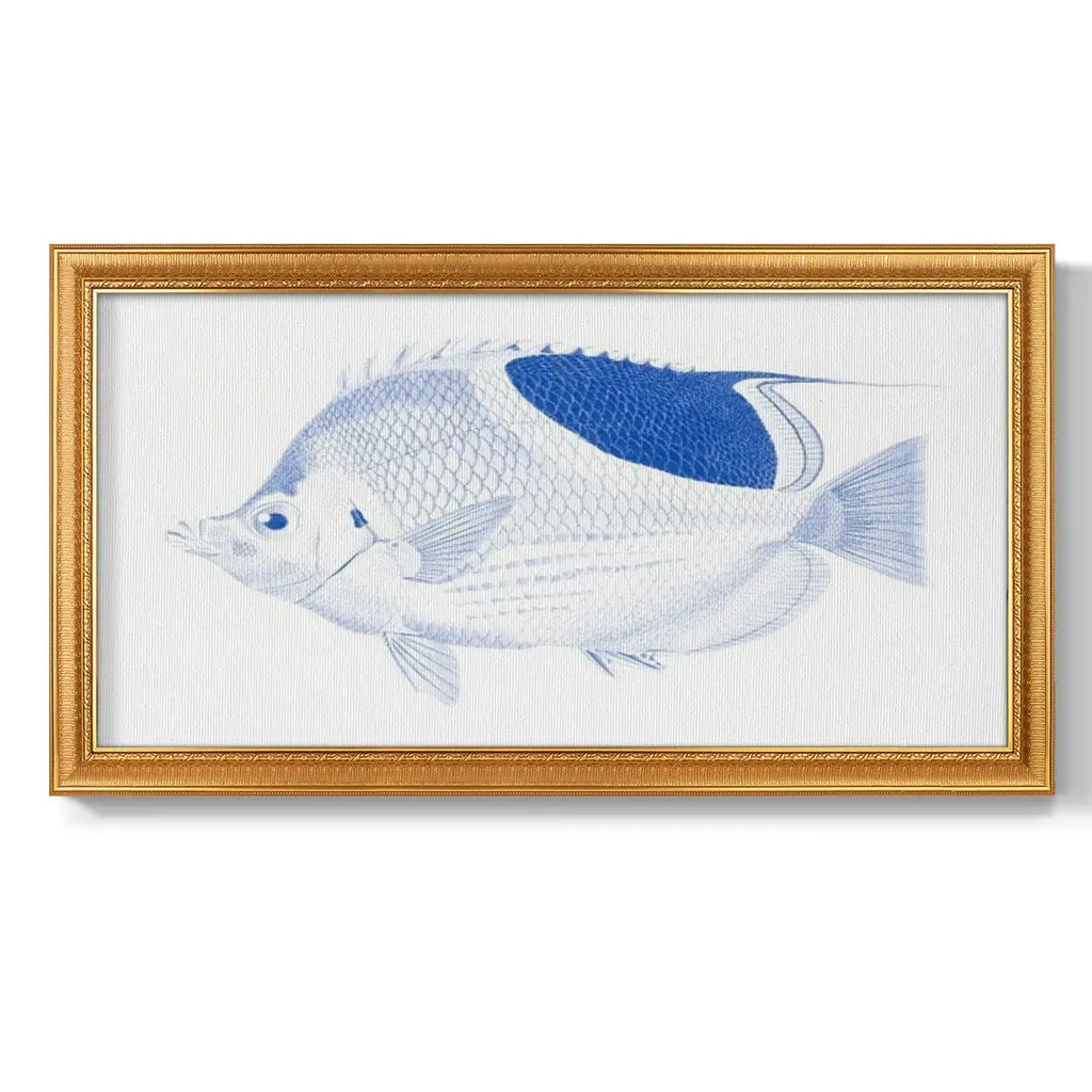 Blue & White Tropical Fish I Premium Framed Canvas- Ready To Hang - 18x34 - Gold