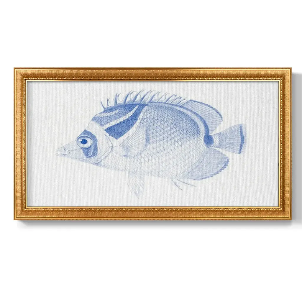 Blue & White Tropical Fish Iv Premium Framed Canvas- Ready To Hang - 18x34 - Copper